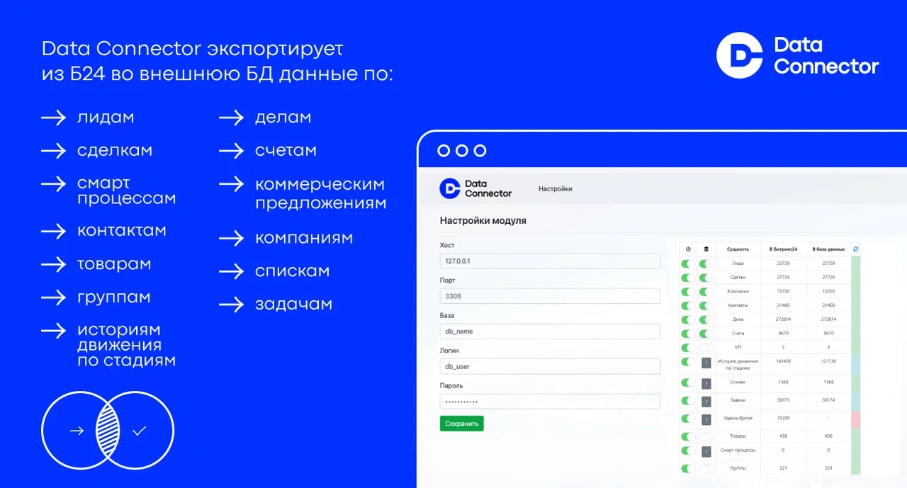 Data Connector — профессиональное решение для подключения BI-аналитики. Создавайте отчёты в Yandex Datalens, Power BI, Google Data Studio. Экспортируем все данные из Битрикс24 от лидов до смарт-процессов.