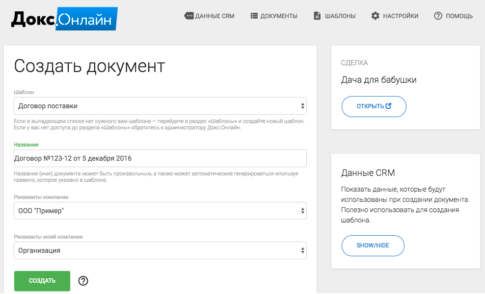 Докс.онлайн — конструктор документов на базе шаблонов в Google Docs.