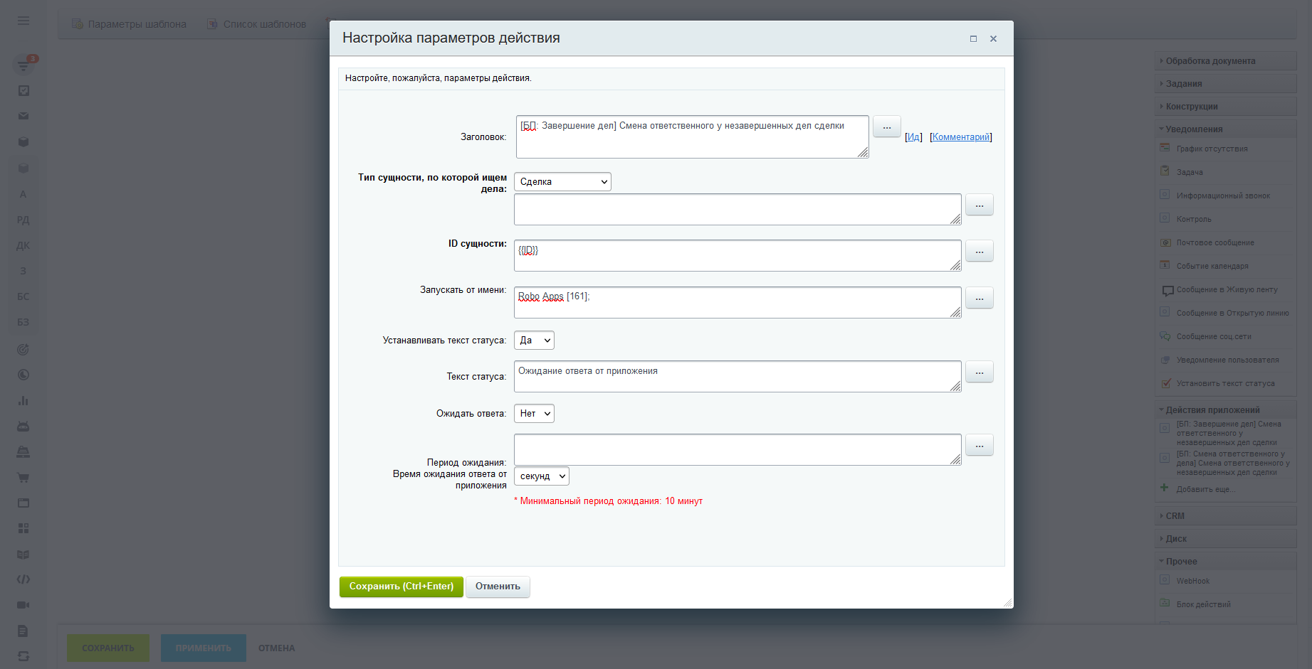 Активити позволяет завершать все открытые дела по указанной сущности CRM.