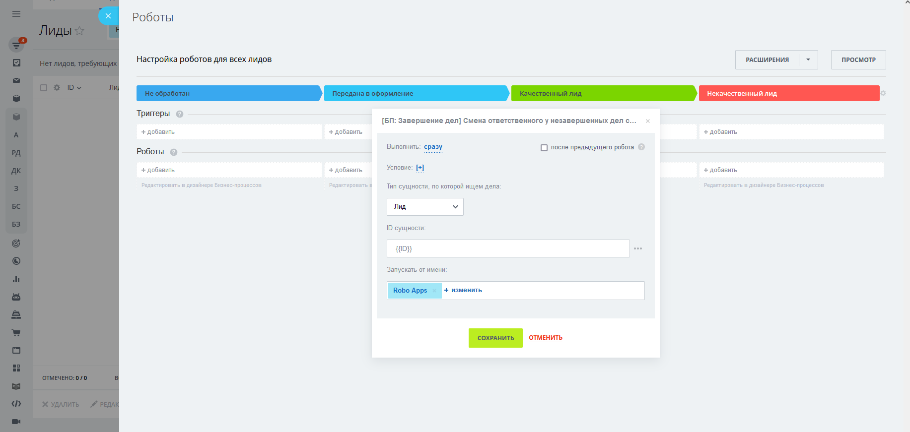 Данное активити позволяет закрыть все активные дела по любой сущности CRM.