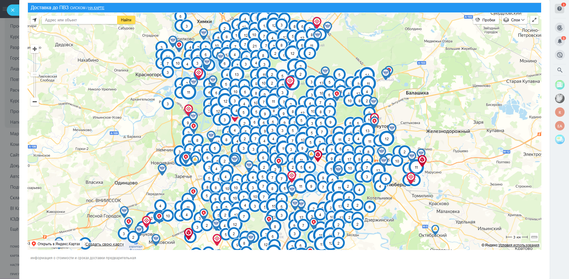 В результатах расчета у вас есть возможность посмотреть все ПВЗ в городе получателя, а при клике на ПВЗ вам откроется детальная информация о нем и доступные тарифы и цены для отправки по этому адресу. Чтобы увидеть карту ПВЗ нужно в блоке "Доставка до ПВЗ" кликнуть на ссылку с текстом "на карте":