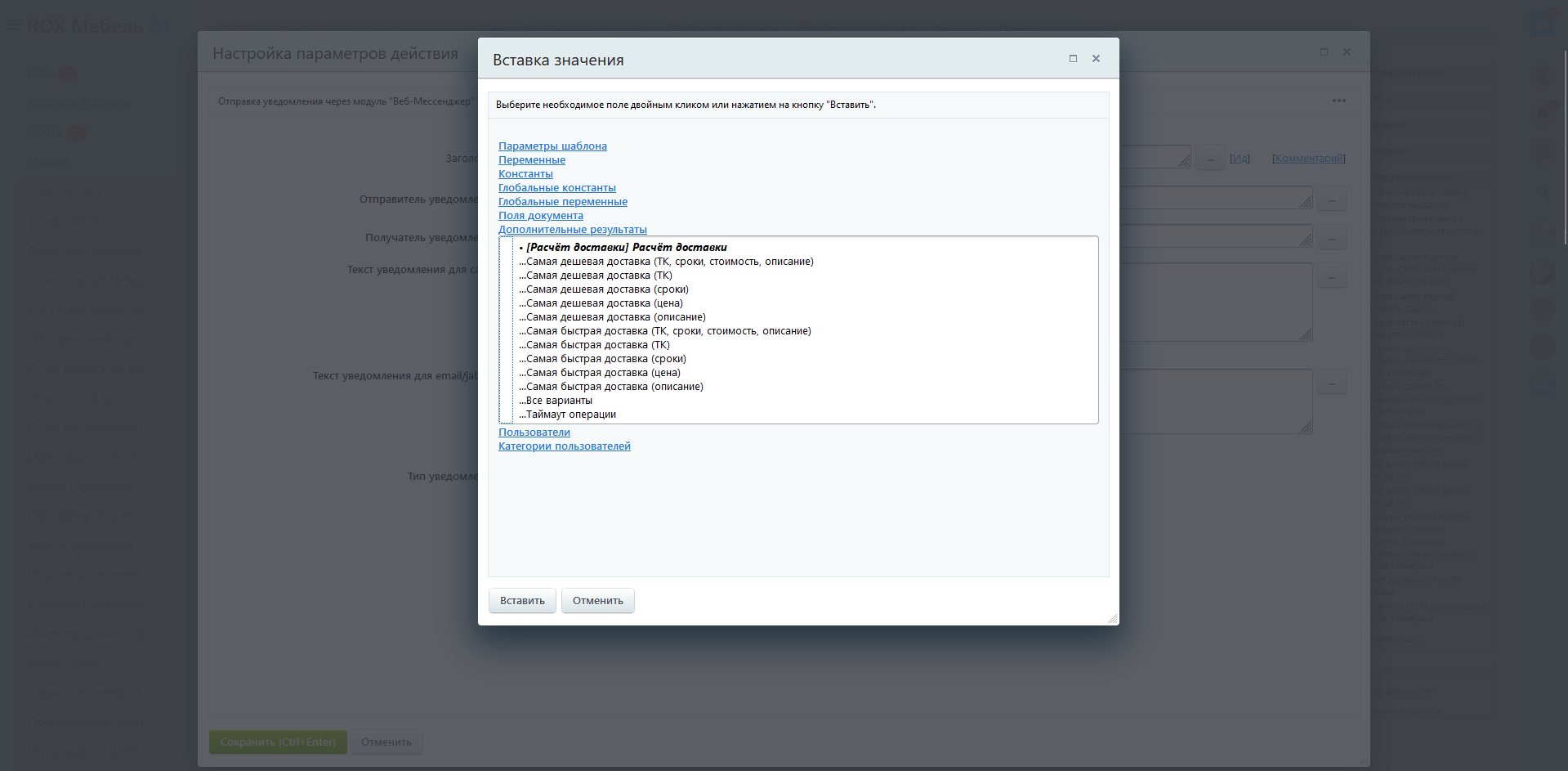Также вы можете указать свойство лида и сделки в которое будет сохраняться стоимость доставки при нажатии на ссылку (выделено красным), а при нажатии на "скопировать стоимость" (выделено желтым) сумма скопируется в буфер обмена: