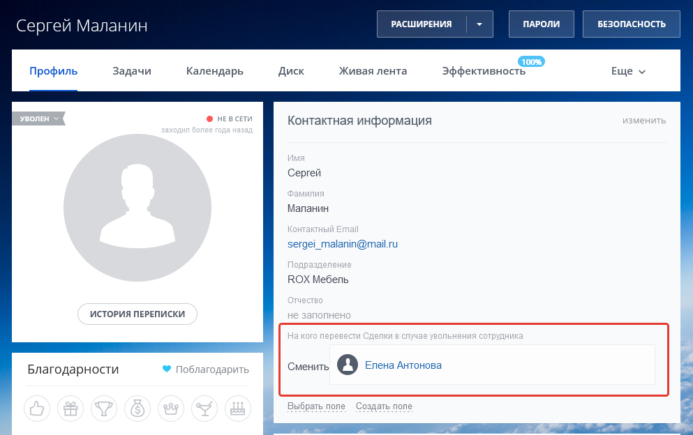 - Увидеть все сделки уволенных сотрудников.