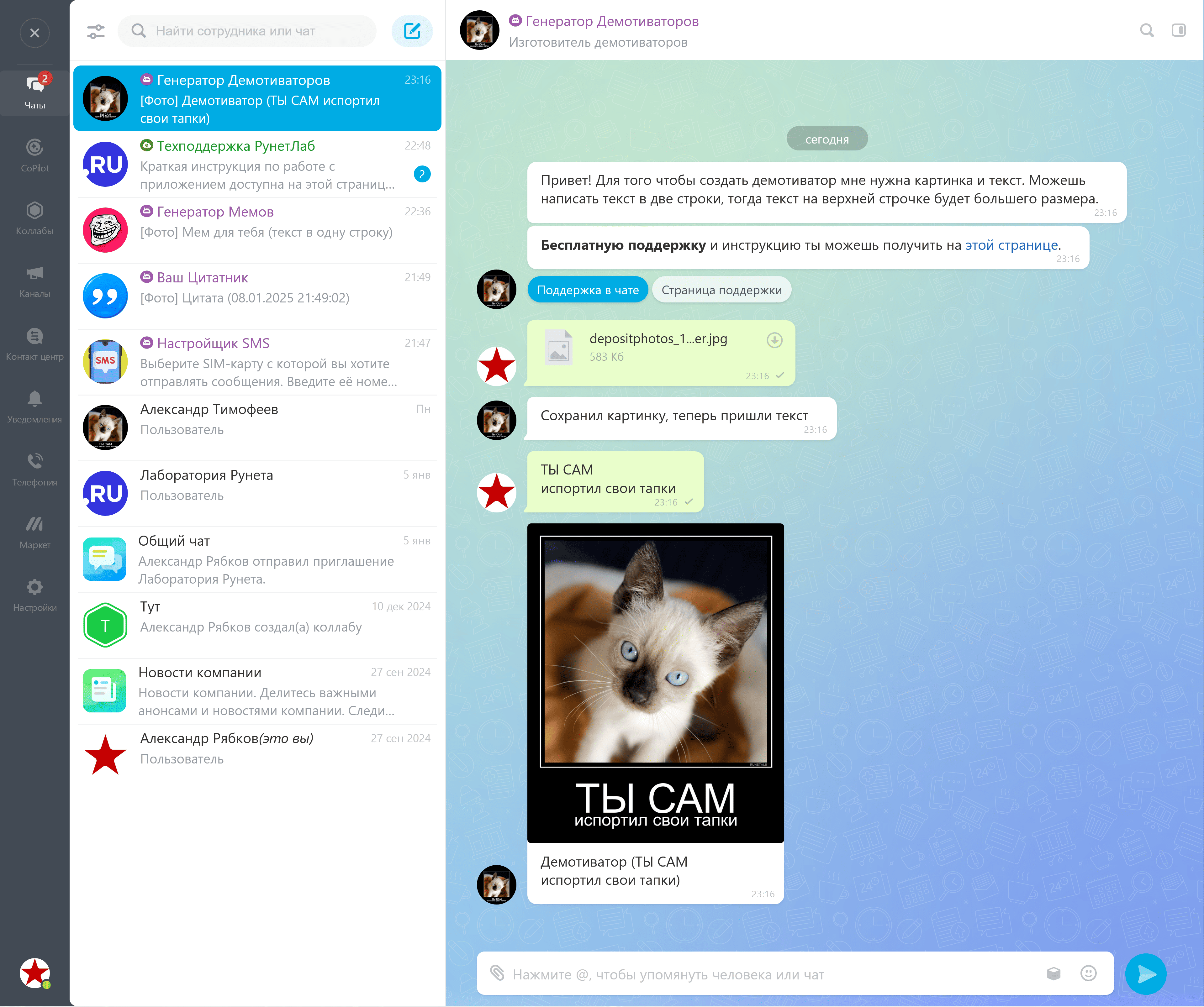 Чат-бот позволяет генерировать демотиваторы из ваших картинок прямо в Битрикс24