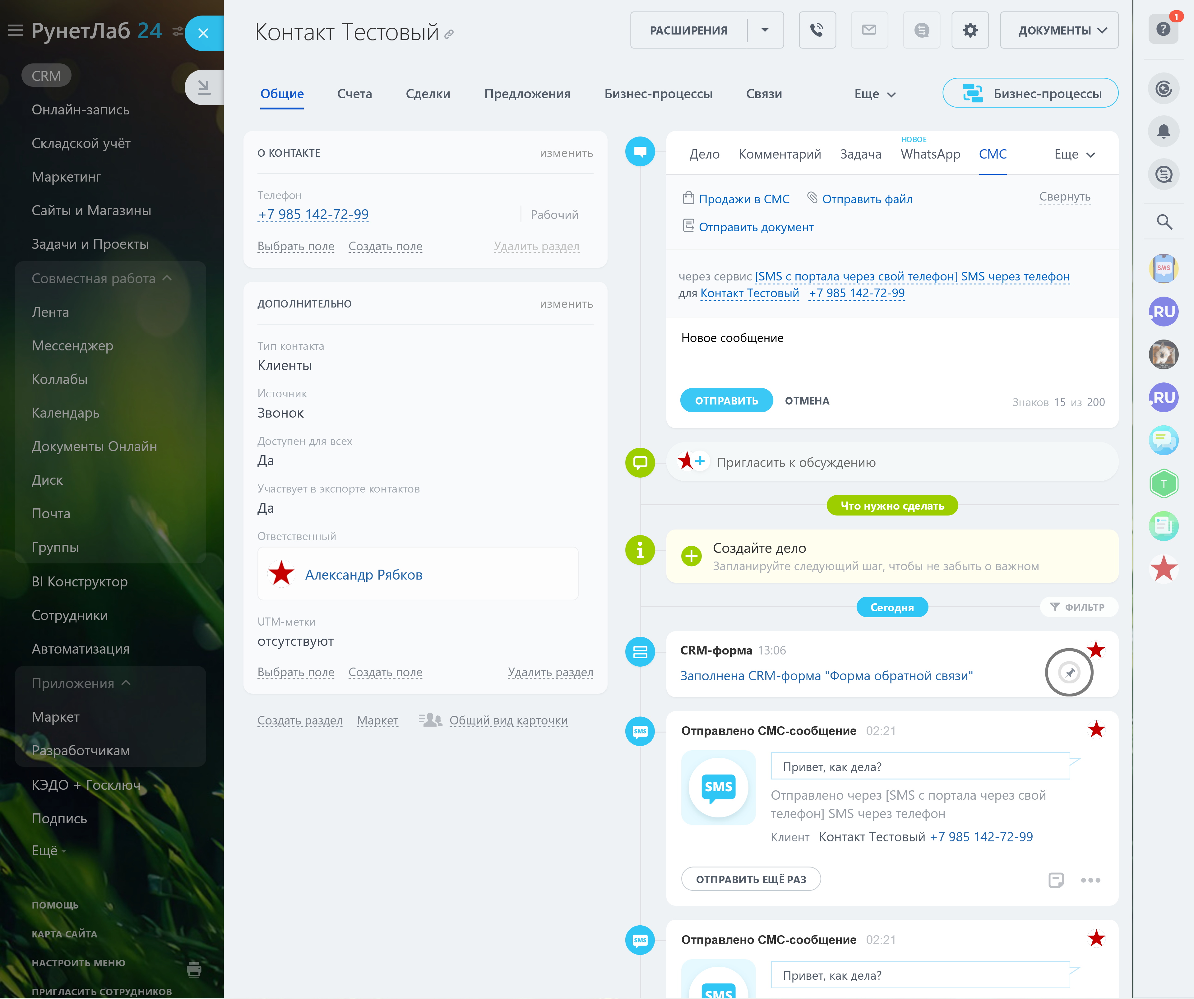 Приложение позволяет отправлять SMS-сообщения прямо из вашей CRM через ваш телефон
