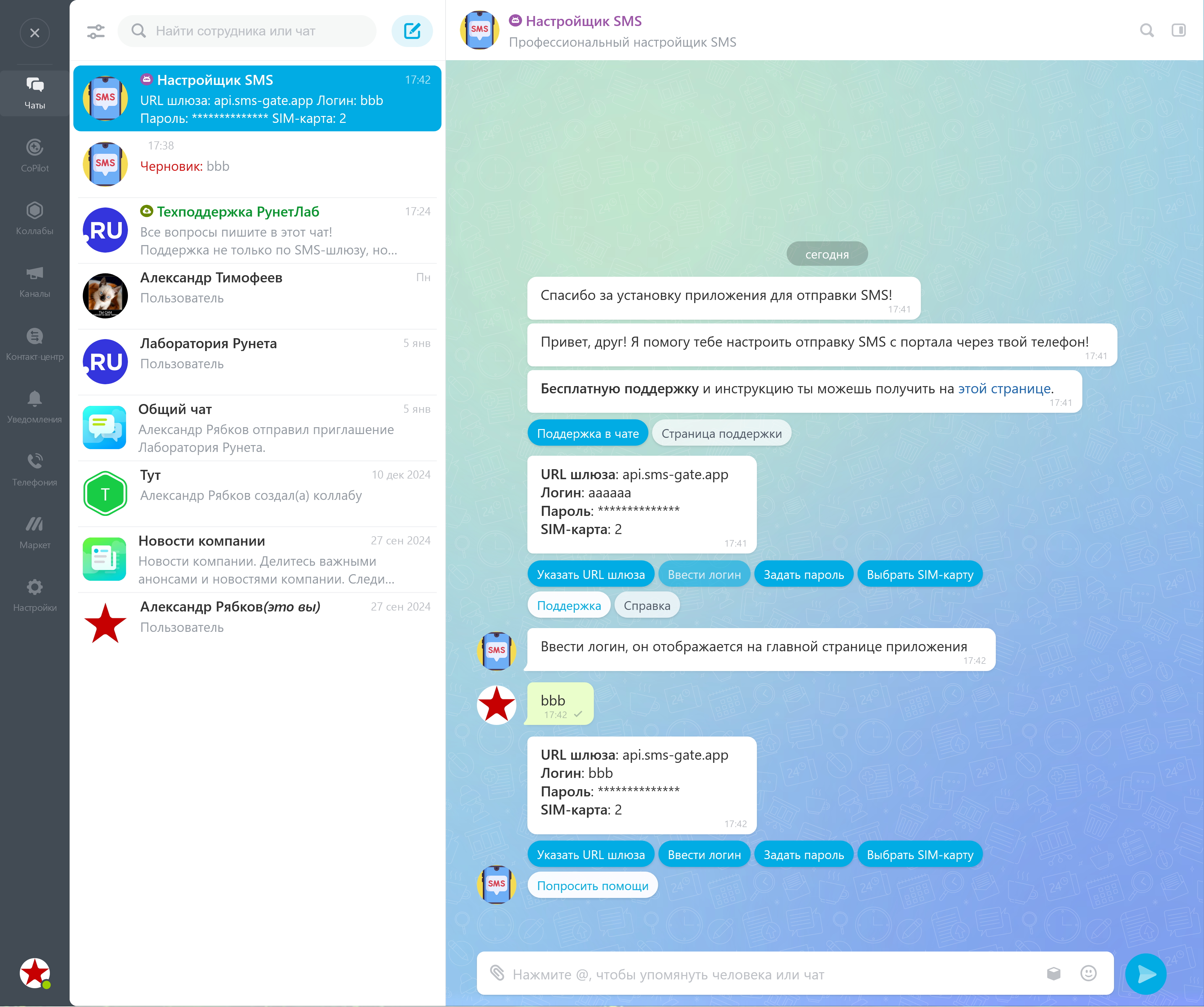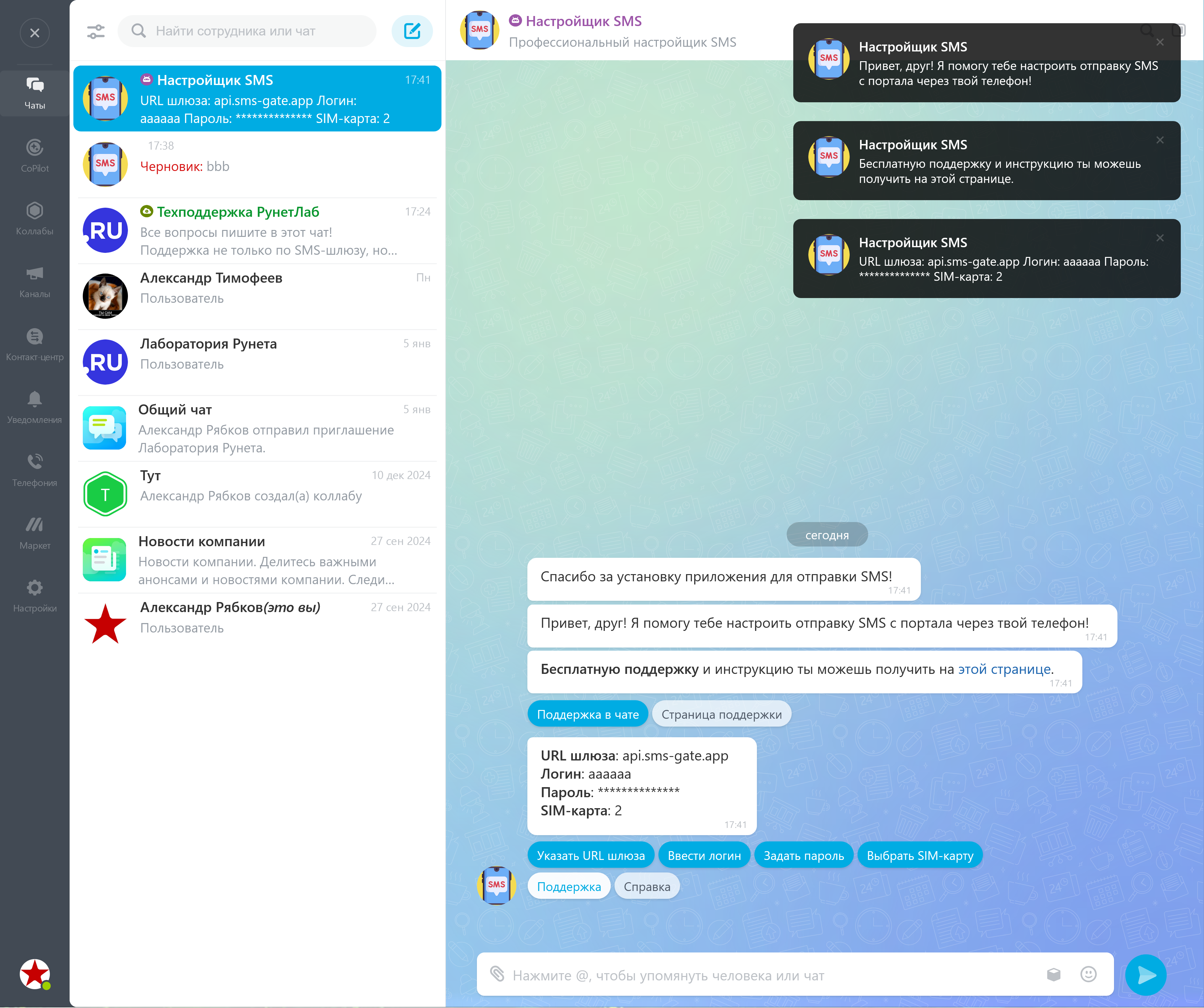 Если у вас возникли вопросы - нажмите в диалоге с ботом кнопку "Поддержка в чате" - в вашем мессенджере активируется открытая линия бесплатной поддержки.