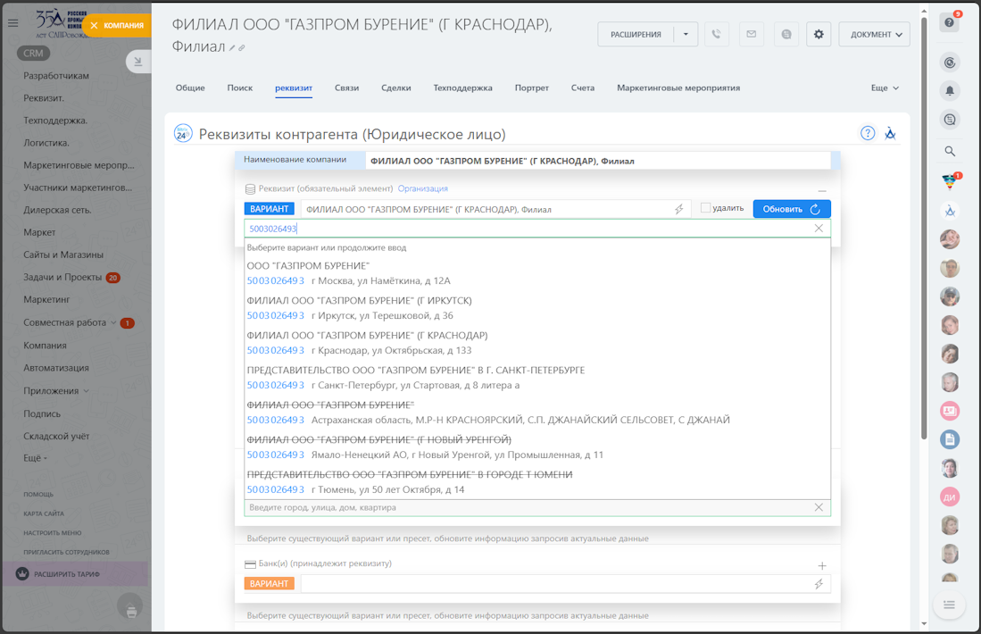 *количество данных возвращаемое сервисом HFLabs DaData Подсказки превосходит данные реквизитов Битрикс24, приложение использует минимальный набор, ориентируясь на бесплатный тариф сервиса