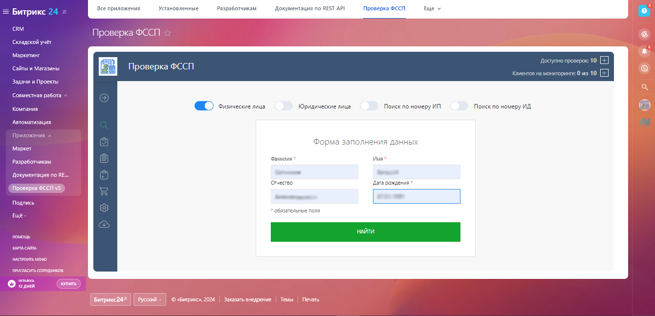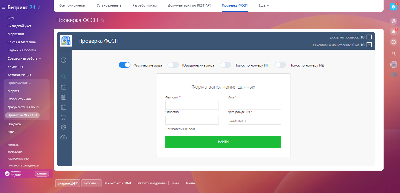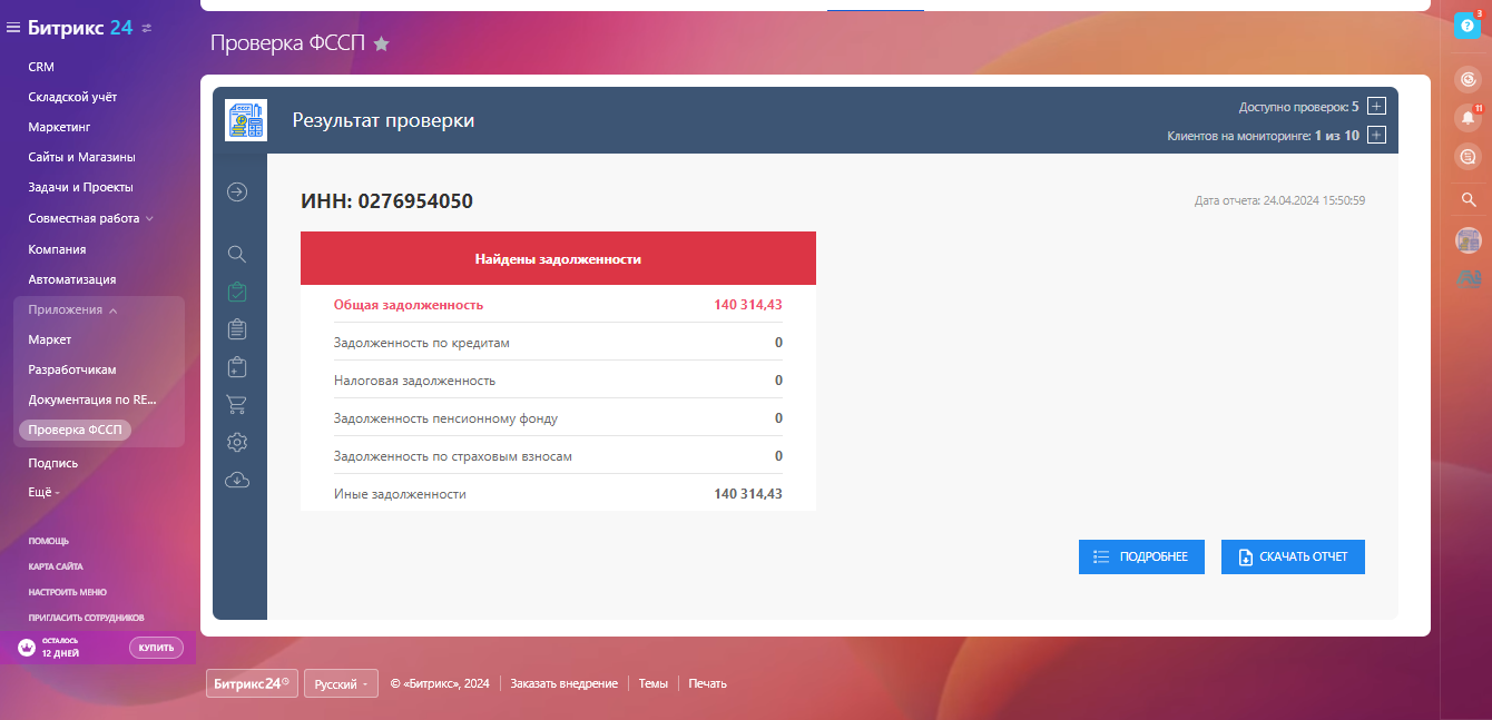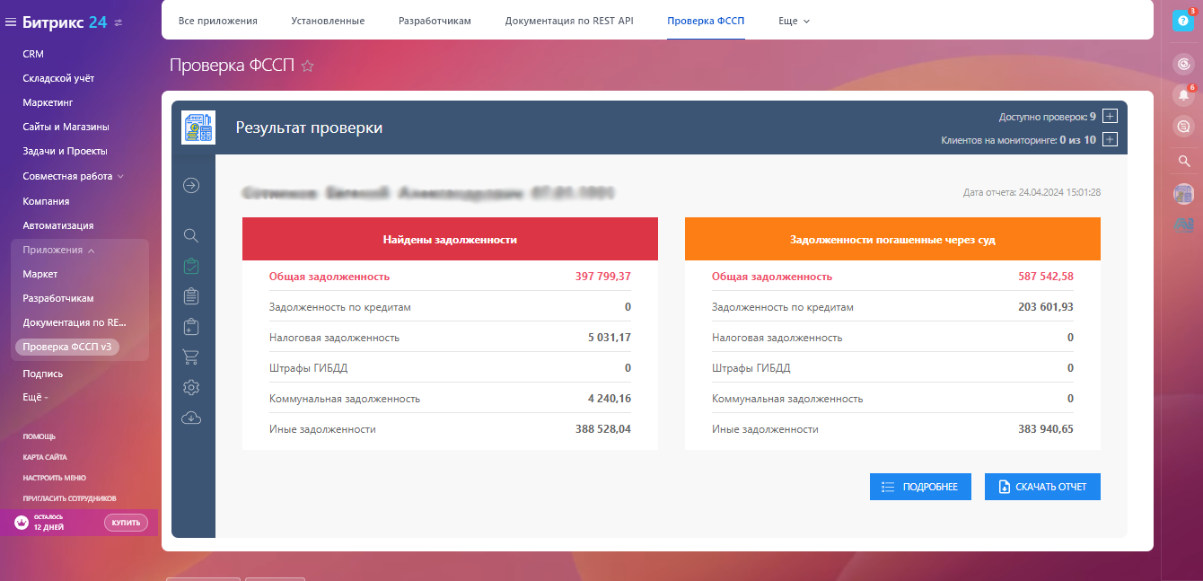 Установите "Задолженности ФССП" прямо сейчас и возьмите под контроль долги ваших клиентов!