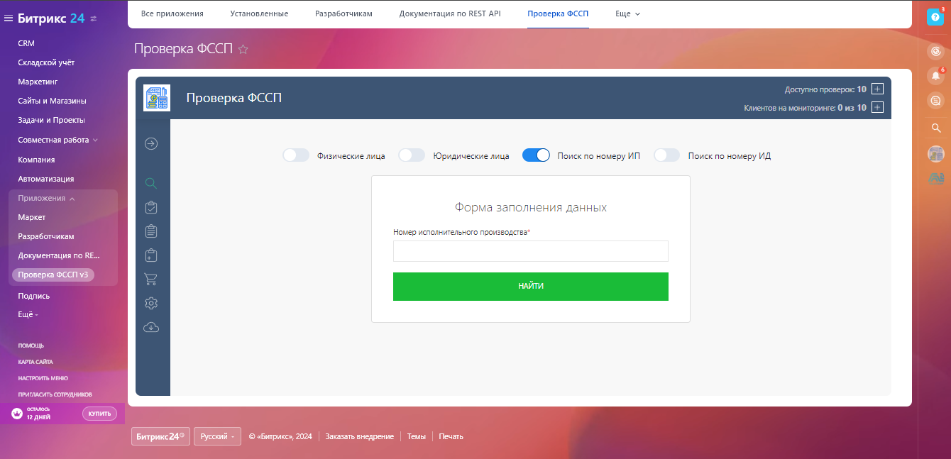 Вам больше не нужно будет открывать сайт проверки приставов, копировать данные из CRM для проверки, вводить проверочный код, сохранять найденную информацию!