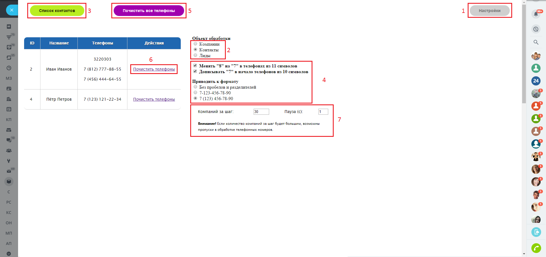 Массовое приведение телефонов CRM к единому формату. Полезно после загрузки данных из внешних источников