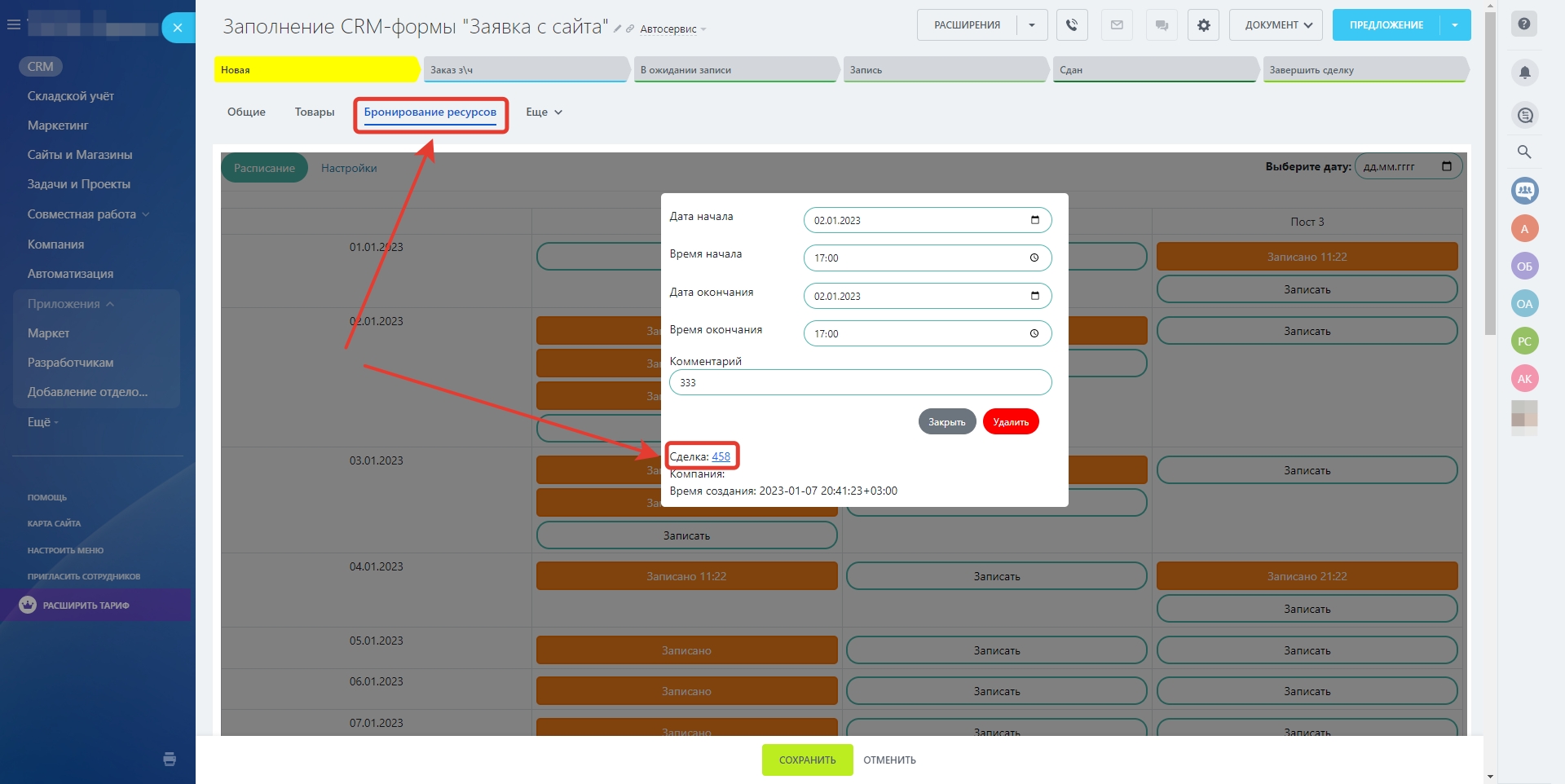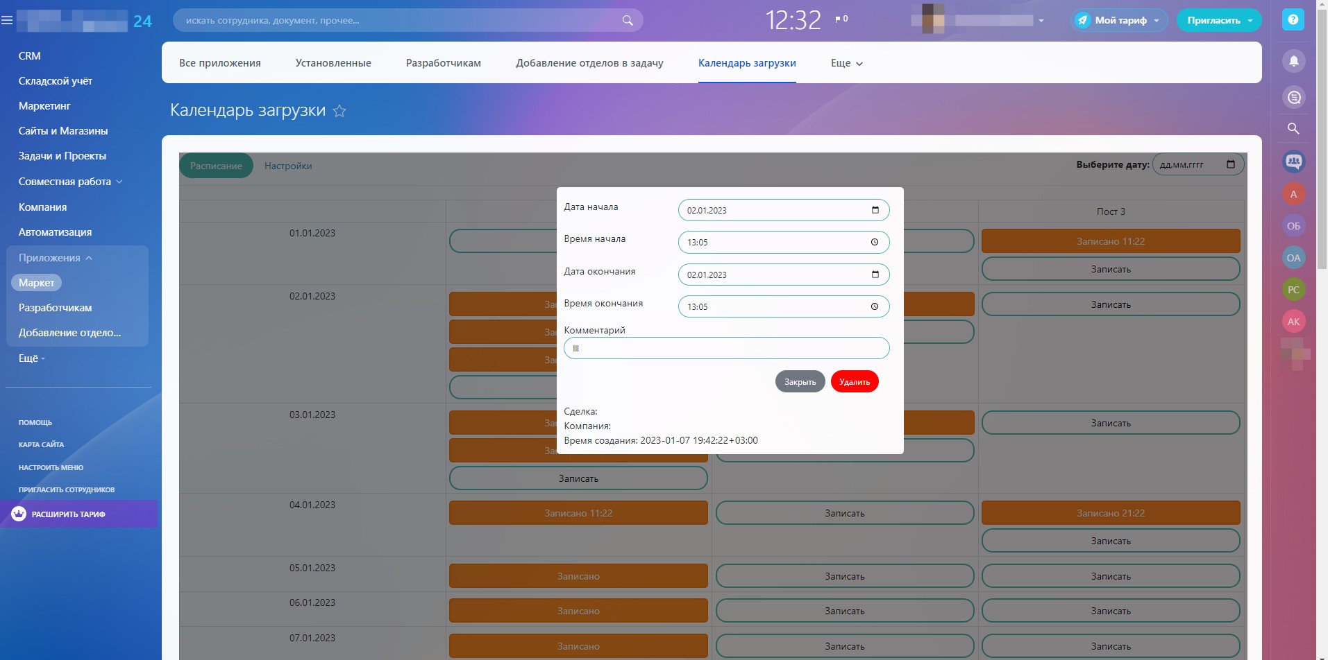 Приложение позволяет создавать неограниченное количество календарей загрузки. Позволяет организовать возможность записи любого типа данных, например: