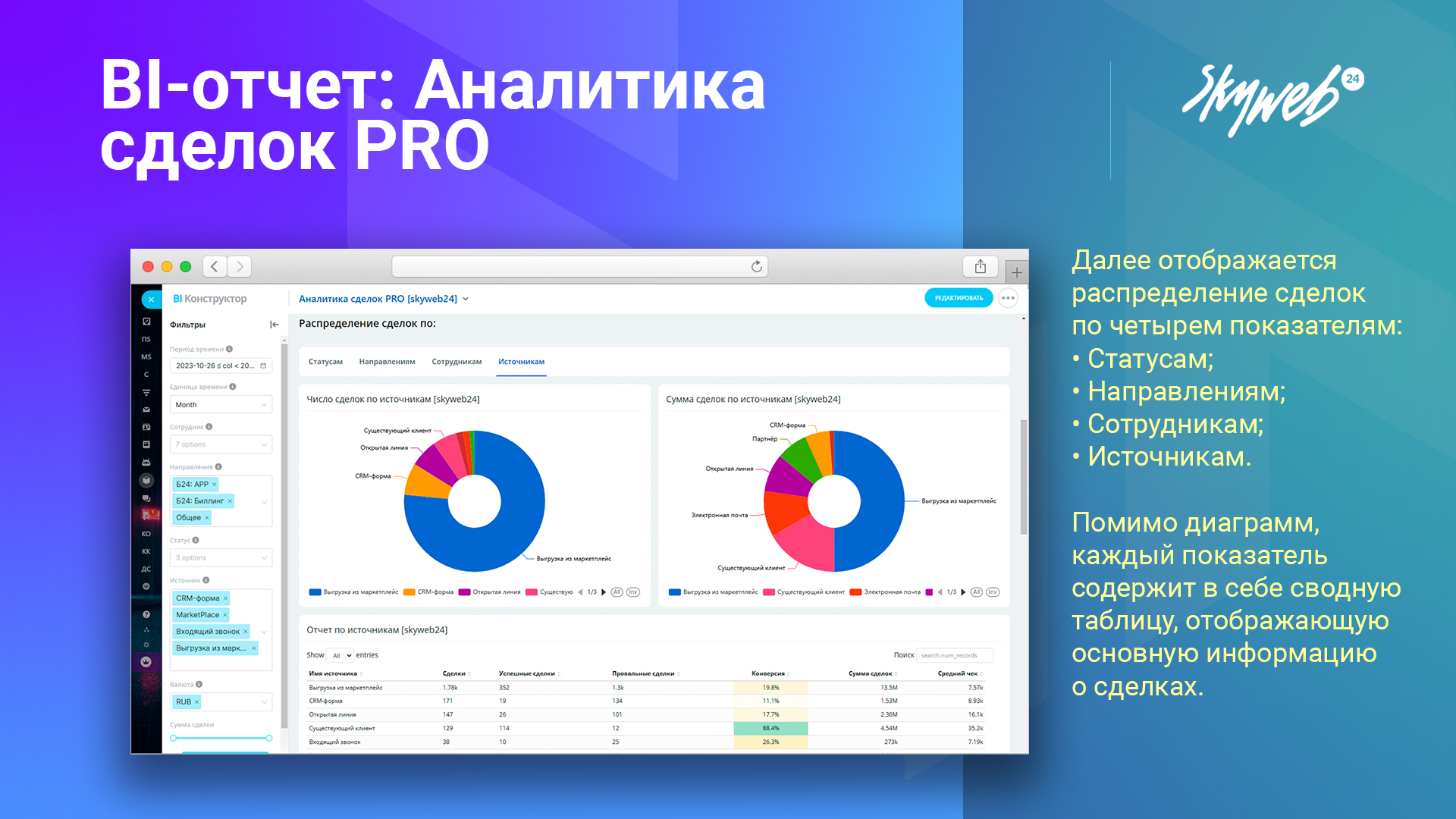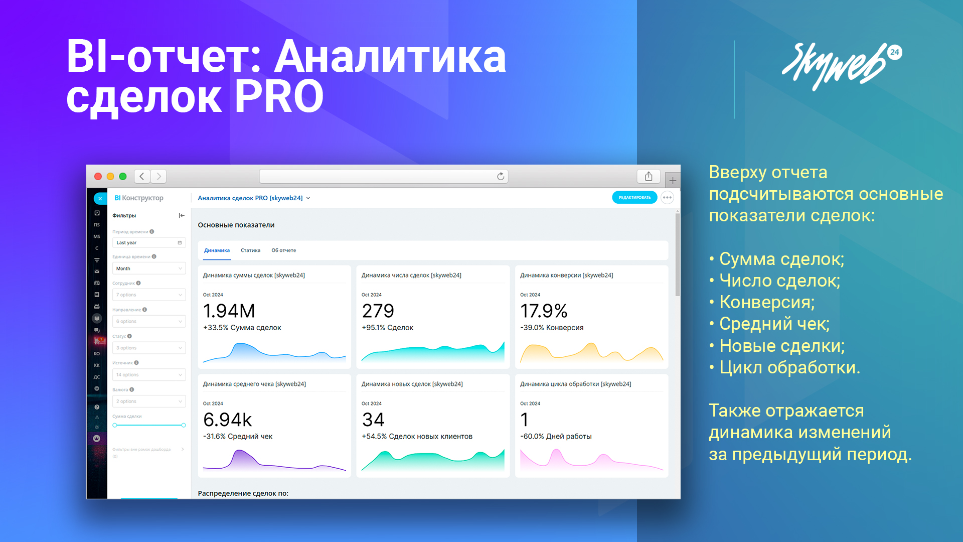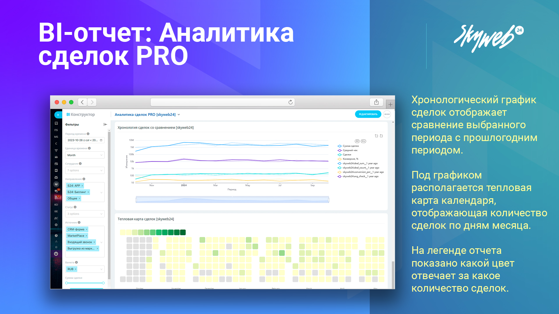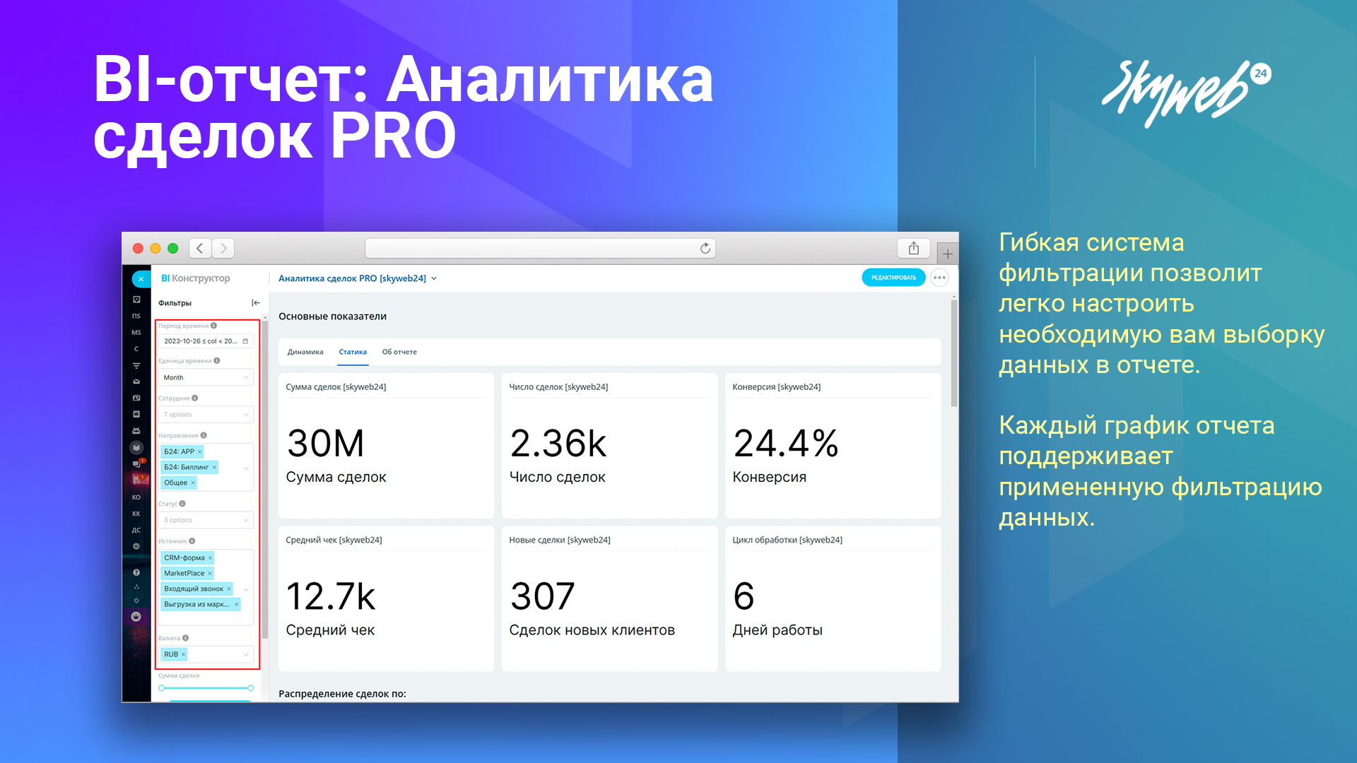 BI-отчёты от Skyweb24 — ваш инструмент для осознанной аналитики и роста бизнеса. Установите Аналитику сделок PRO и начните принимать решения, основанные на данных!