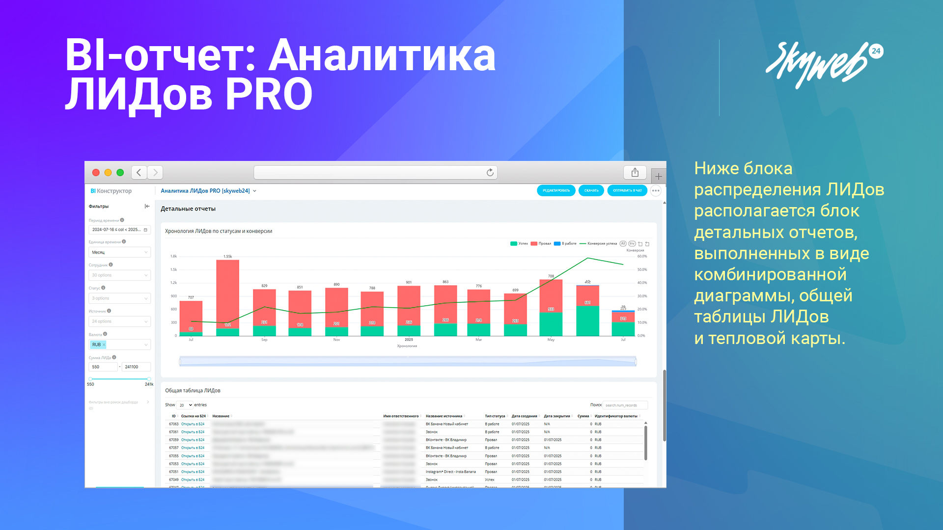 Получите мощный инструмент для анализа продаж в Битрикс24! Наш BI-отчет — это не просто набор графиков и таблиц, а полноценный дашборд, который превращает CRM-данные в бизнес-решения.