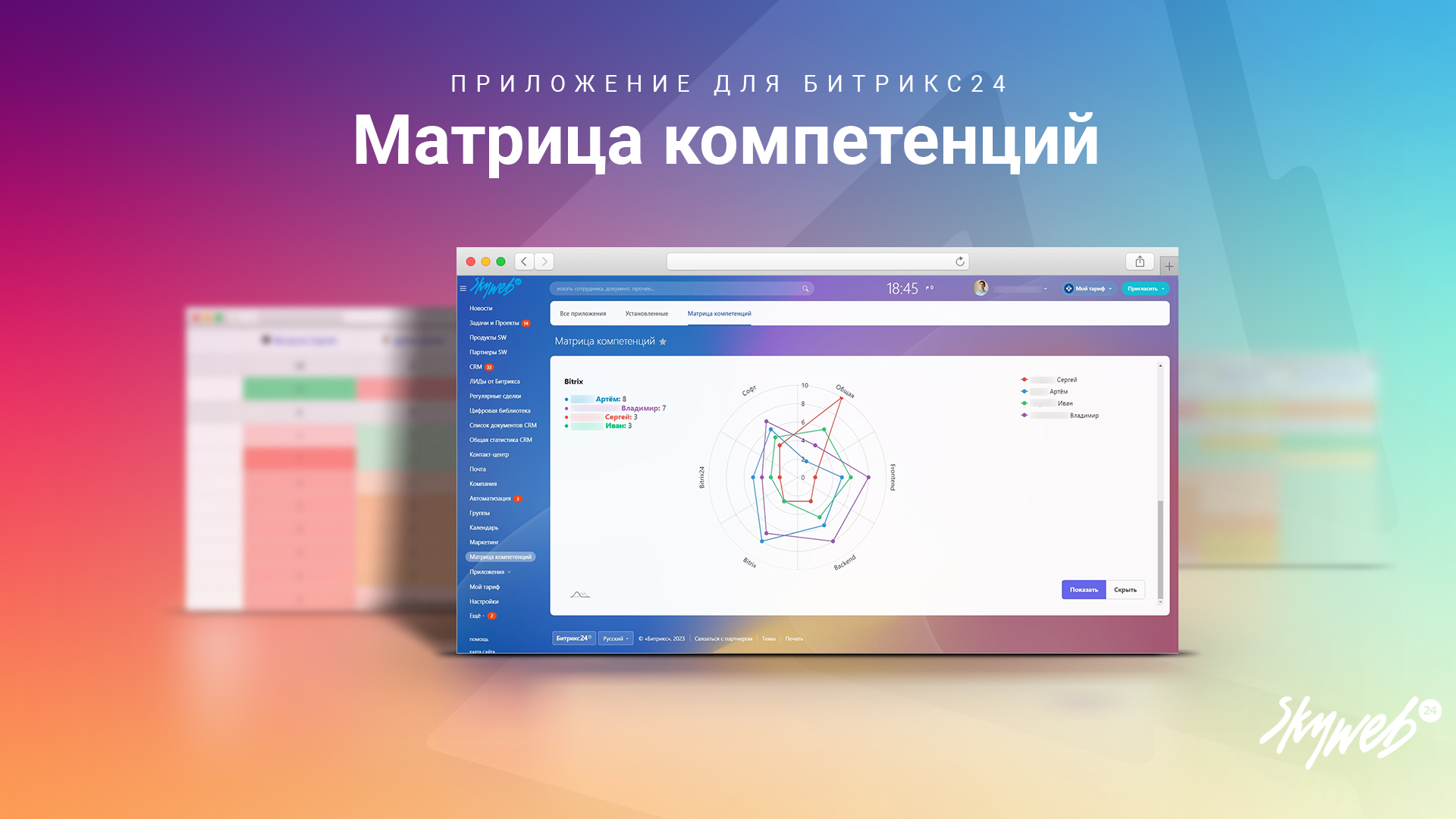 В стандартной CRM Битрикс24 нет удобного способа управления квалификациями сотрудников. "Матрица компетенций" от Скайвеб24 решает эту проблему, предоставляя инструмент для создания и оценки групп компетенций, что позволяет эффективно управлять квалификациями сотрудников и выявлять потребности в обучении.