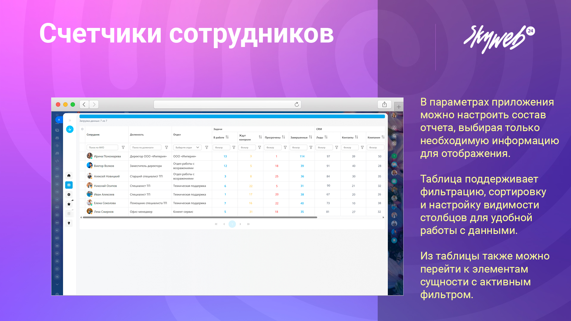Счетчики сотрудников: персонализированный отчет по работе сотрудников в CRM.