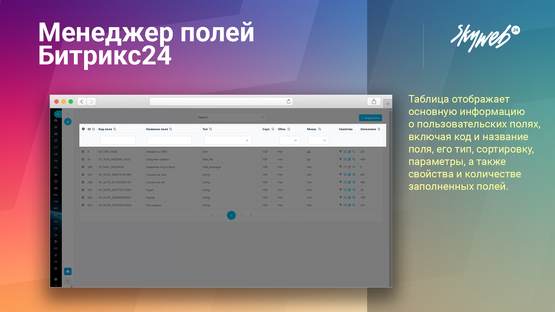 Попробуйте "Менеджер полей" от Скайвеб24 уже сегодня и упростите управление пользовательскими полями в вашей CRM Битрикс24!