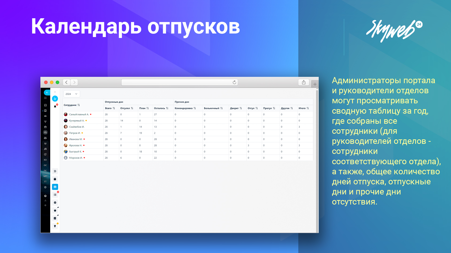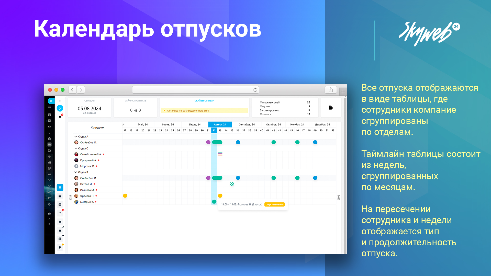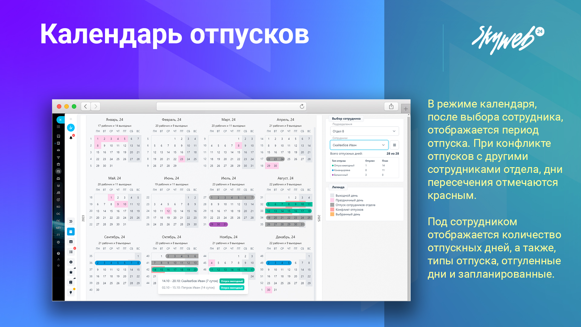 Оптимизируйте процесс планирования и управления отпусками с приложением «Календарь отпусков» от СкайВеб24 уже сегодня!