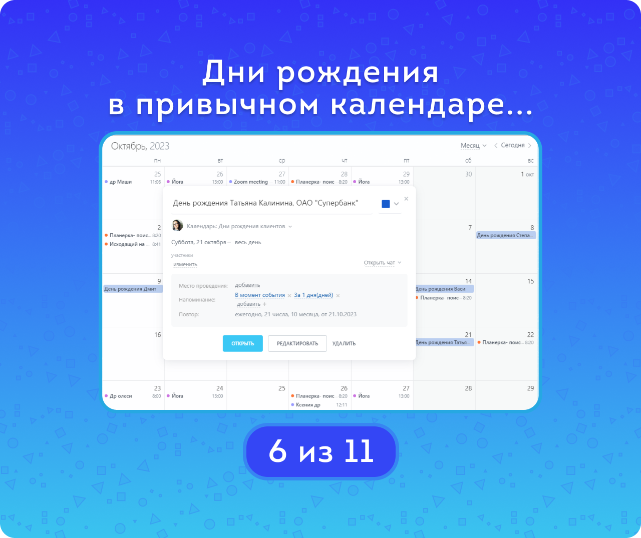 Поздравьте клиентов вовремя: удобное приложение, отдельный календарь и гибкие напоминания