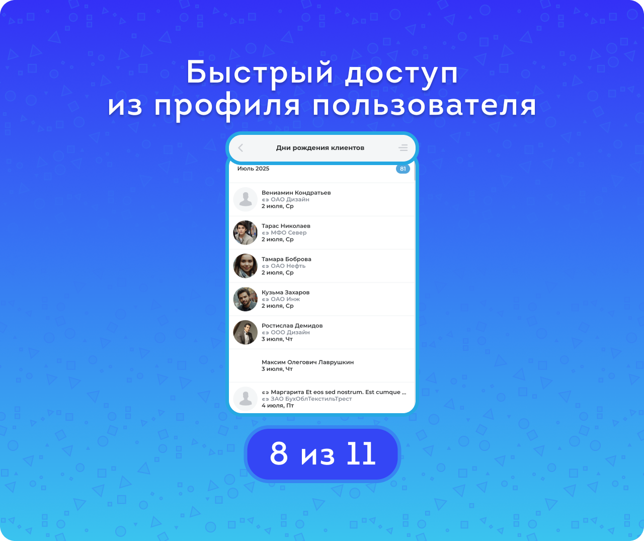 — Быстро увидеть полный список именинников на смартфоне.