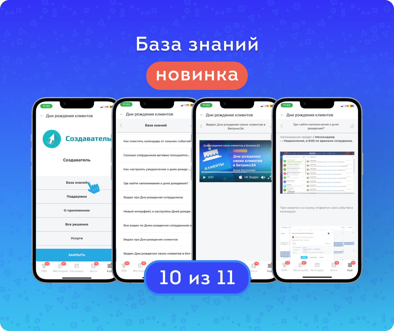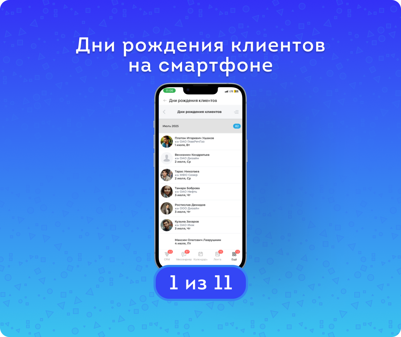 1. Учитываются права текущего пользователя. Администратор портала видит дни рождения всех клиентов, руководители и сотрудники — в зависимости от настроенных ролей и прав доступа в CRM.