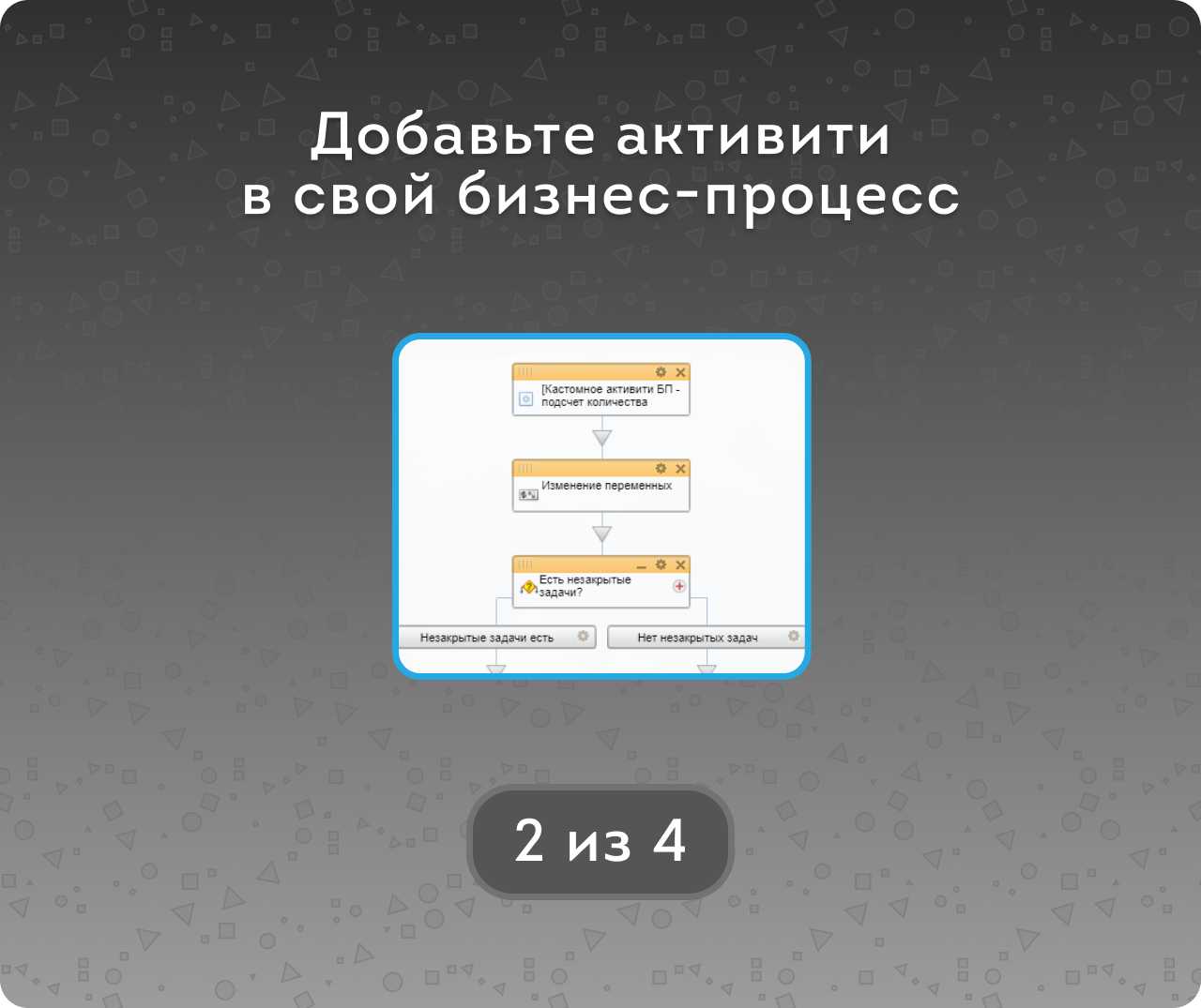 Для заказа кастомных активити и настройки бизнес-процессов напишите на ask@sozdavatel.ru