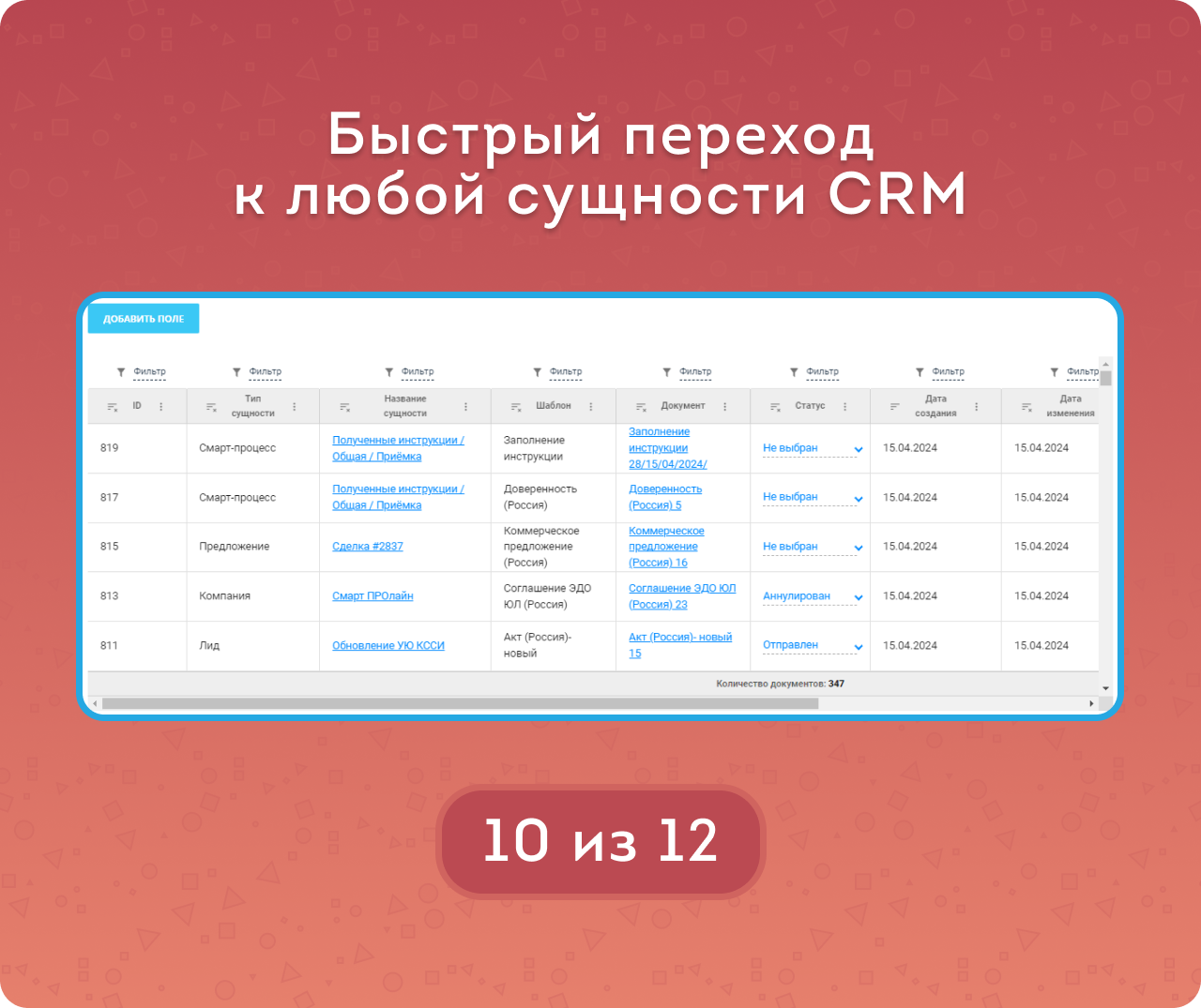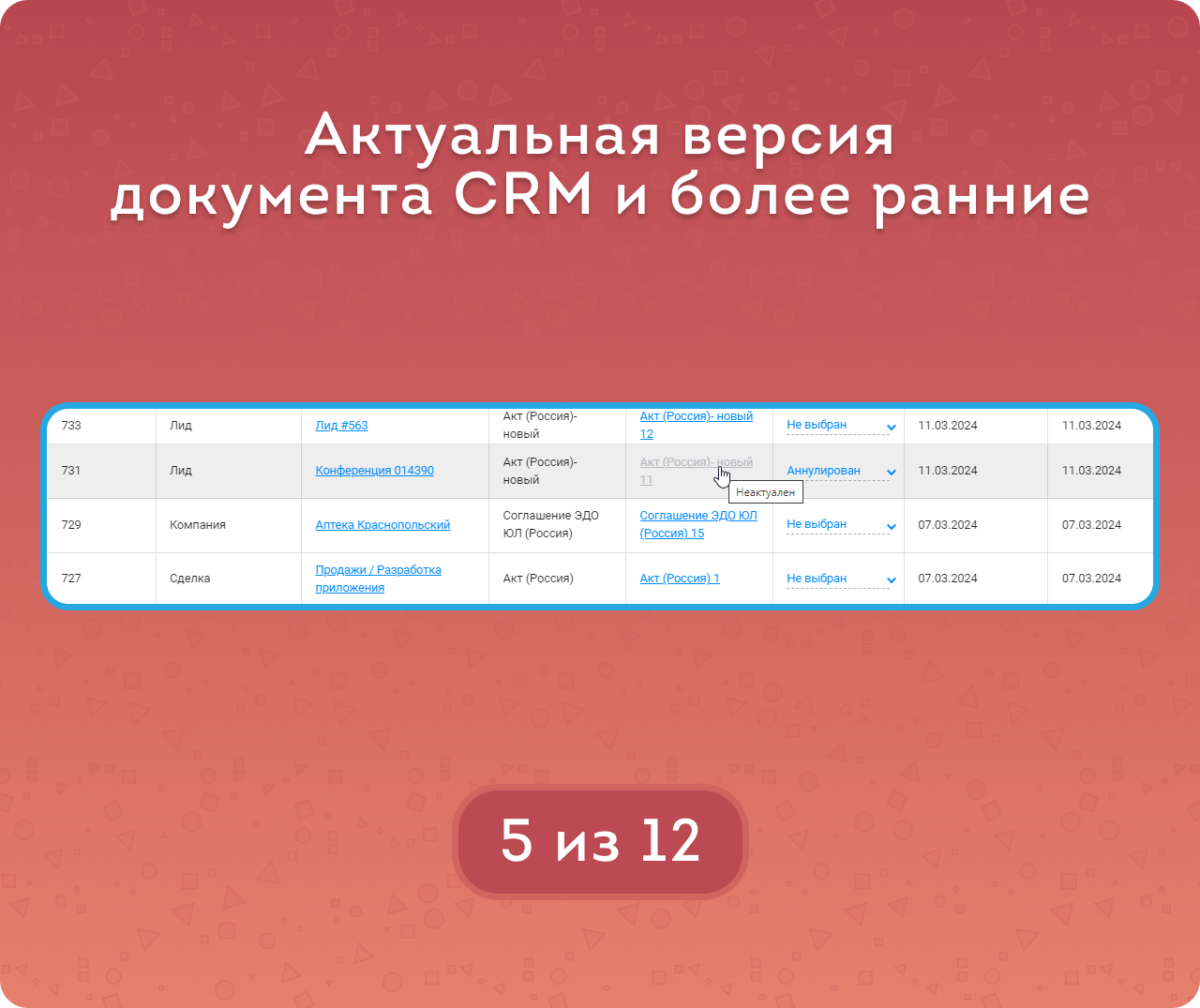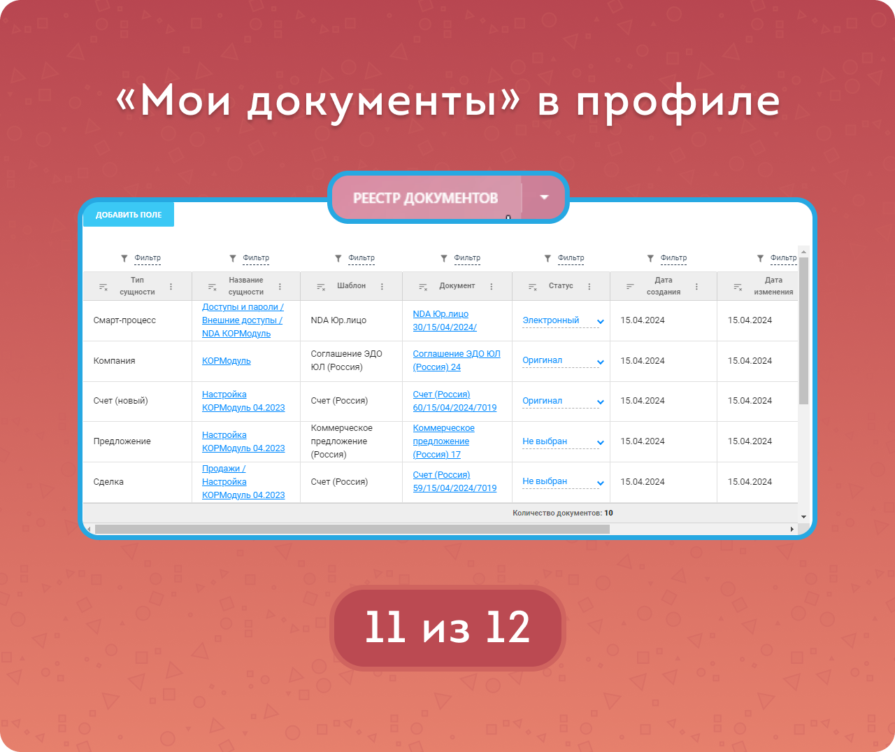 Реестр документов CRM — это полный список документов, созданных по шаблону.