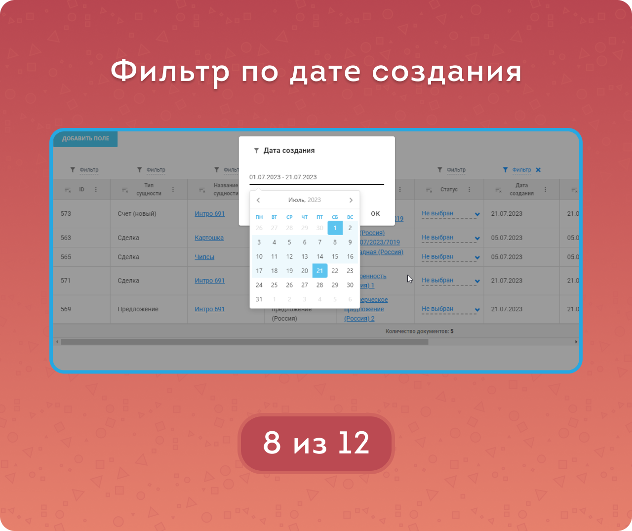 Реестр документов CRM упрощает поиск созданных ранее документов.