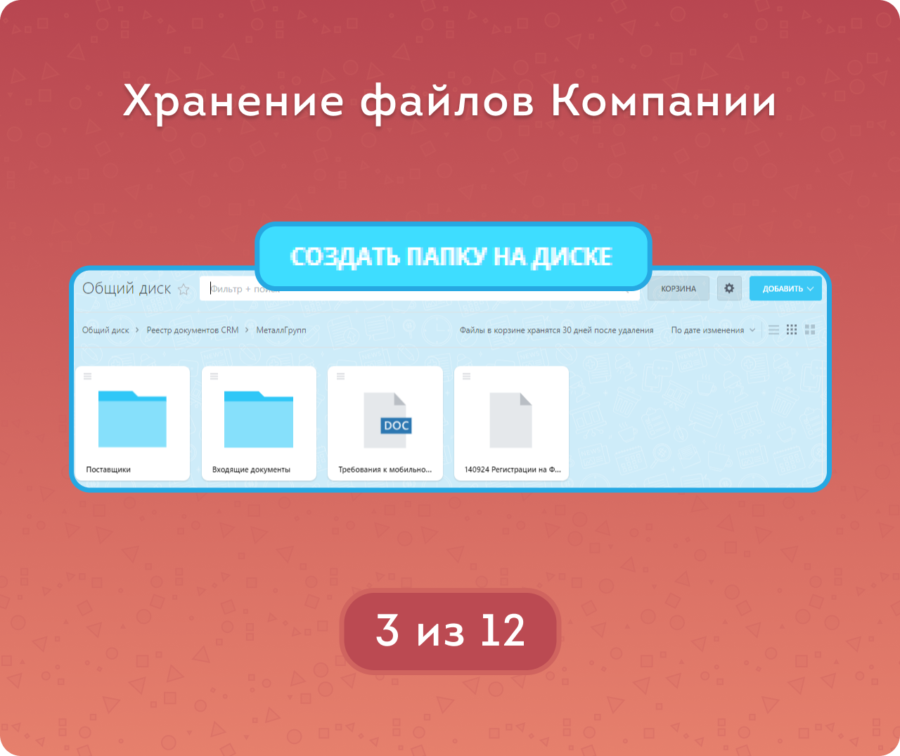 Вы можете сохранять в папке Компании файлы в любом формате, но не забывайте про доступное место на диске, чтобы его не переполнить.