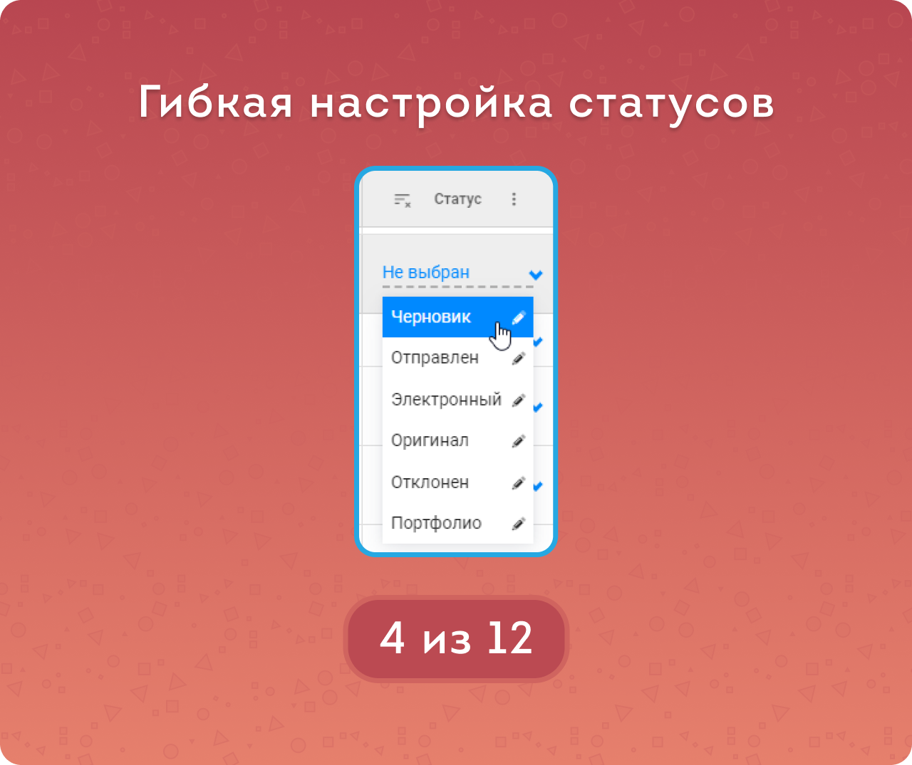 Изменение статусов доступно всем пользователям, но администратор также имеет возможность менять их названия. Например, вместо «Портфолио» поставить «Архив» или любое другое. Важно! Если у части документов уже проставлен какой-то статус, а потом название изменилось — тогда у них в таблице сохранится старое название.