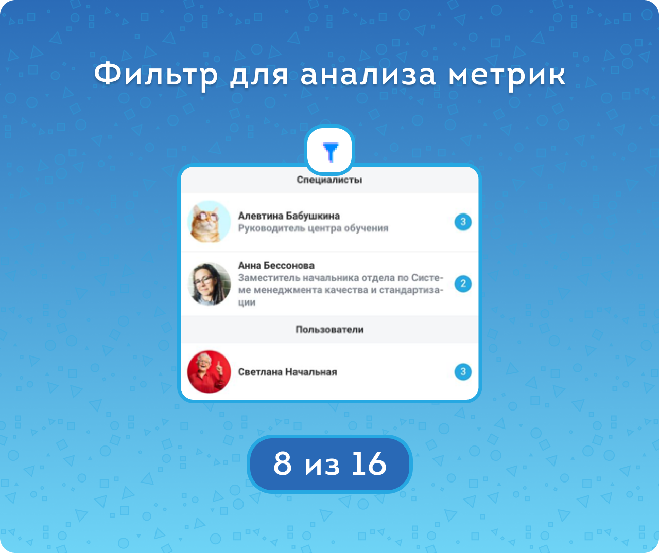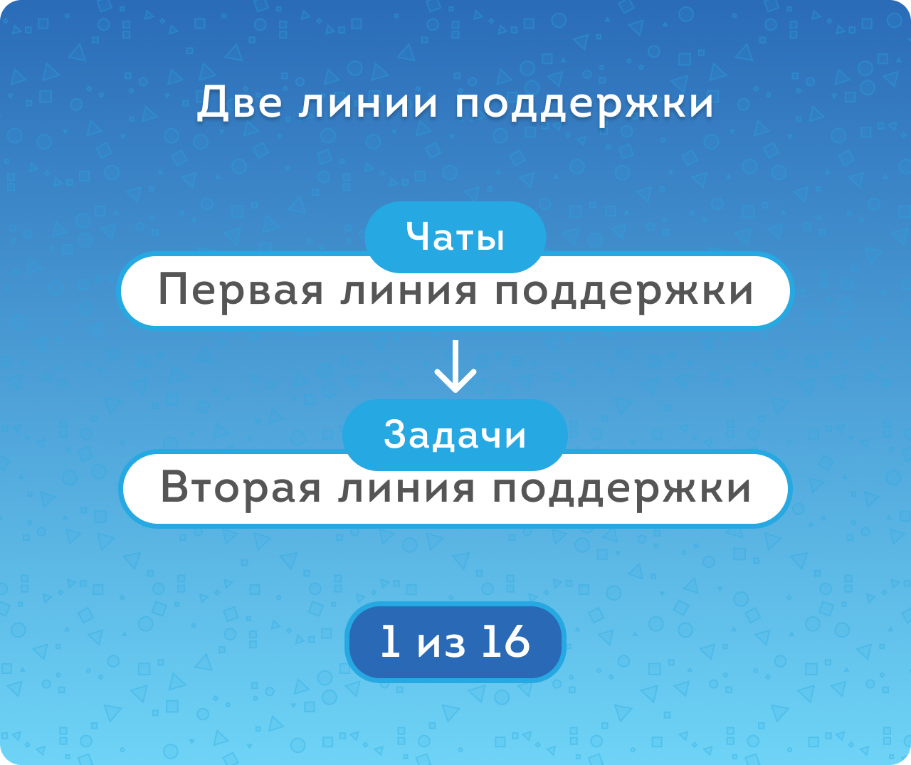 Первая линия поддержки, в данном случае — это групповой чат, в котором есть и пользователи (любые сотрудники портала) и специалисты (выбранные в настройках приложения), а также их руководитель. Первая линия поддержки должна откликаться максимально быстро, и метриками качества для нее являются: