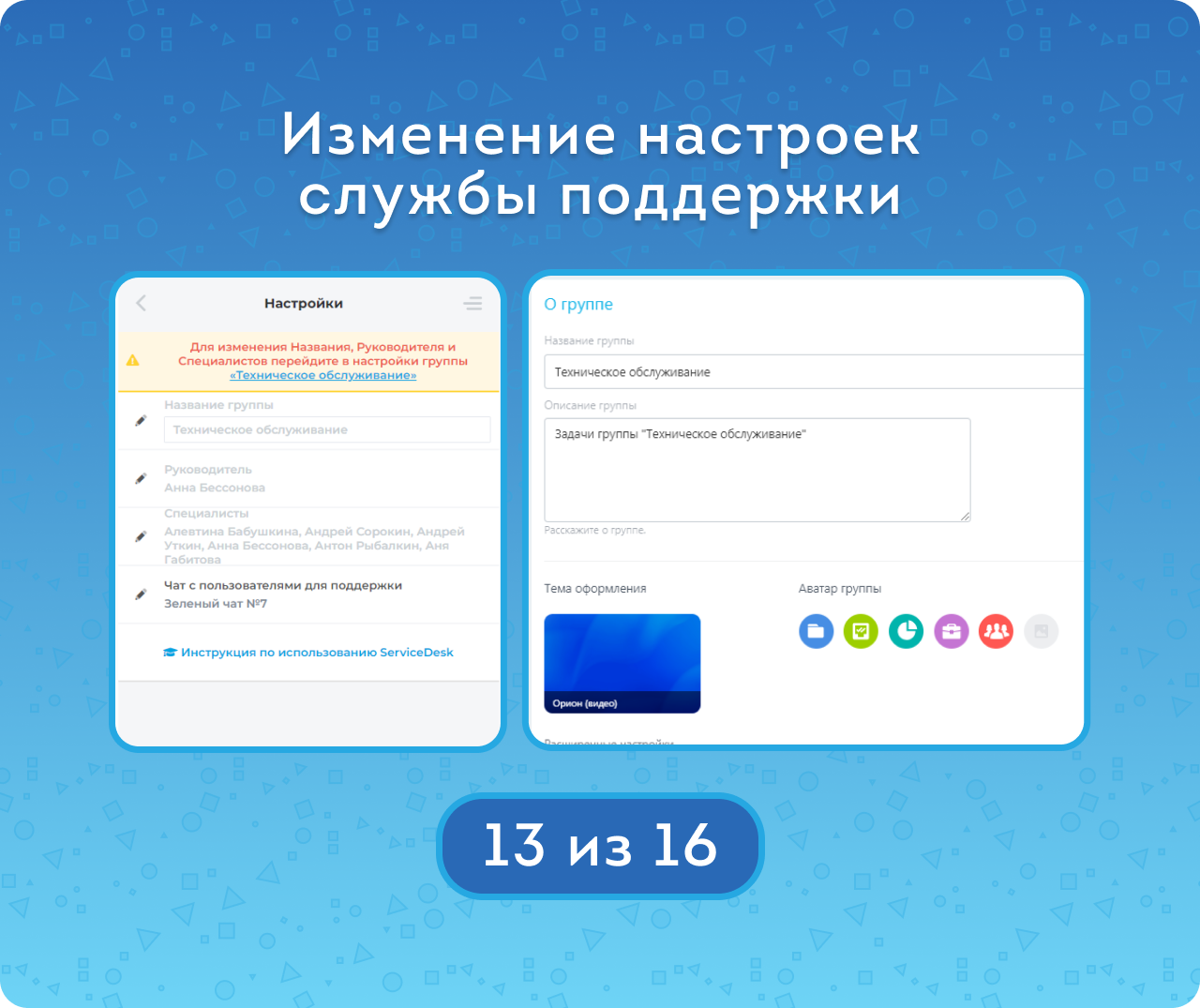 Обратите внимание: после завершения настройки в приложении можно будет поменять только чат. А редактировать данные группы — в типовом интерфейсе. Также там можно настроить ее тему, аватар, описание, инструменты и пригласить новых участников.