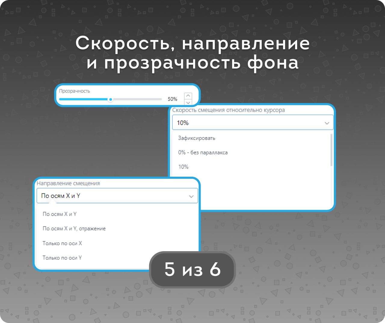 Например, можно настроить направления таким образом, что дальний фон будет смещаться только в одну стороны, а ближний — в другую.