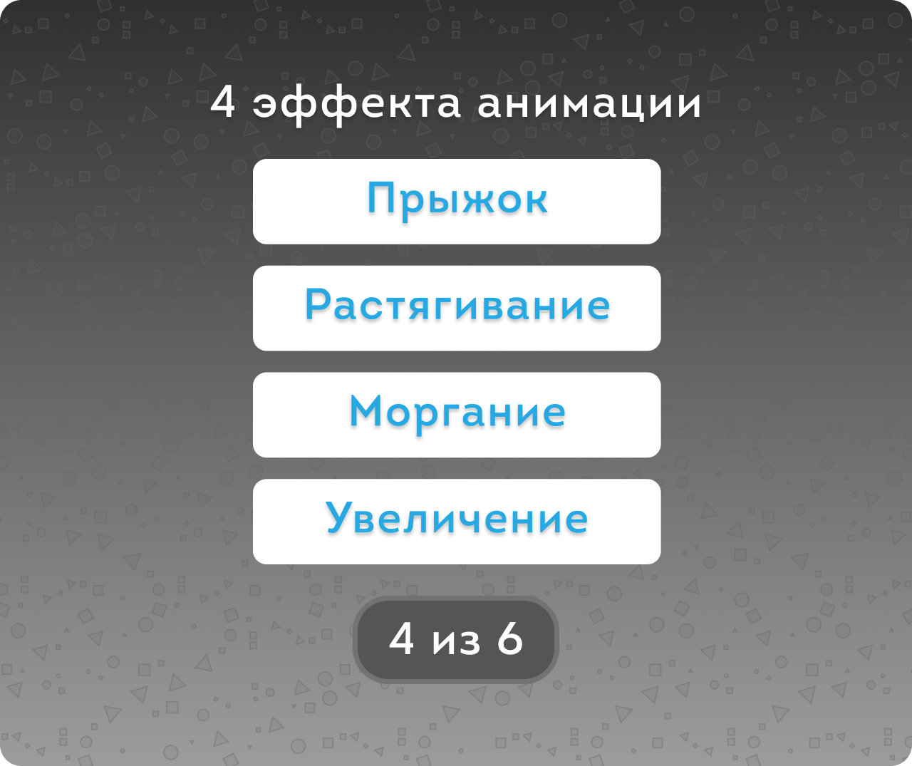 Также в Дизайне находится и анимация отдельных элементов: карточек, кнопок, заголовков, картинок и текстов. На текущий момент анимация типовая — но мы работаем над этим!
