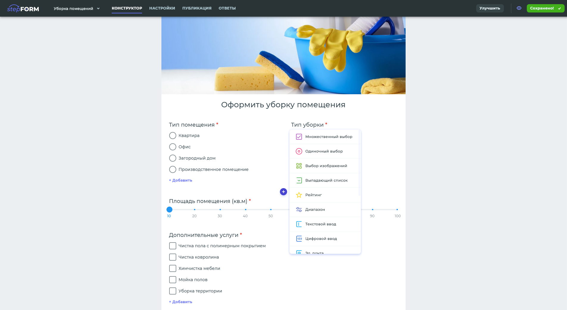 Собирайте контактные данные клиентов, проводите маркетинговые опросы и предлагайте стоимость на ваши услуги с помощью stepFORM.