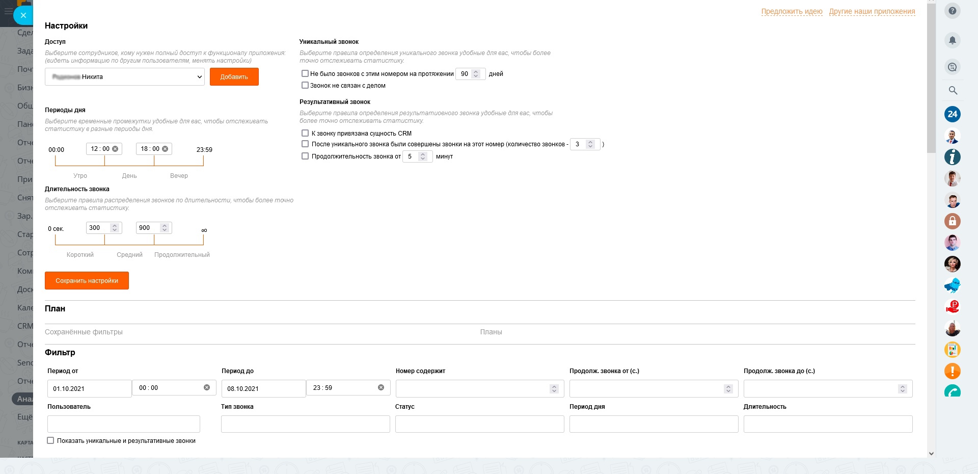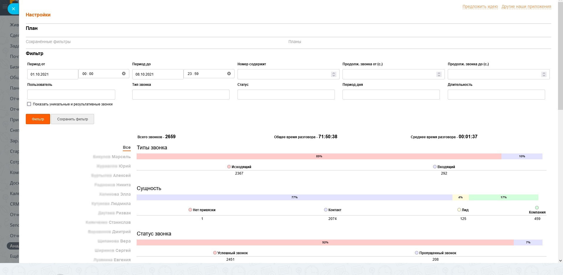Анализ, статистика, планирование и отчеты по звонкам