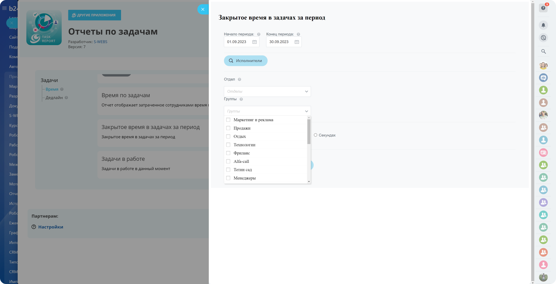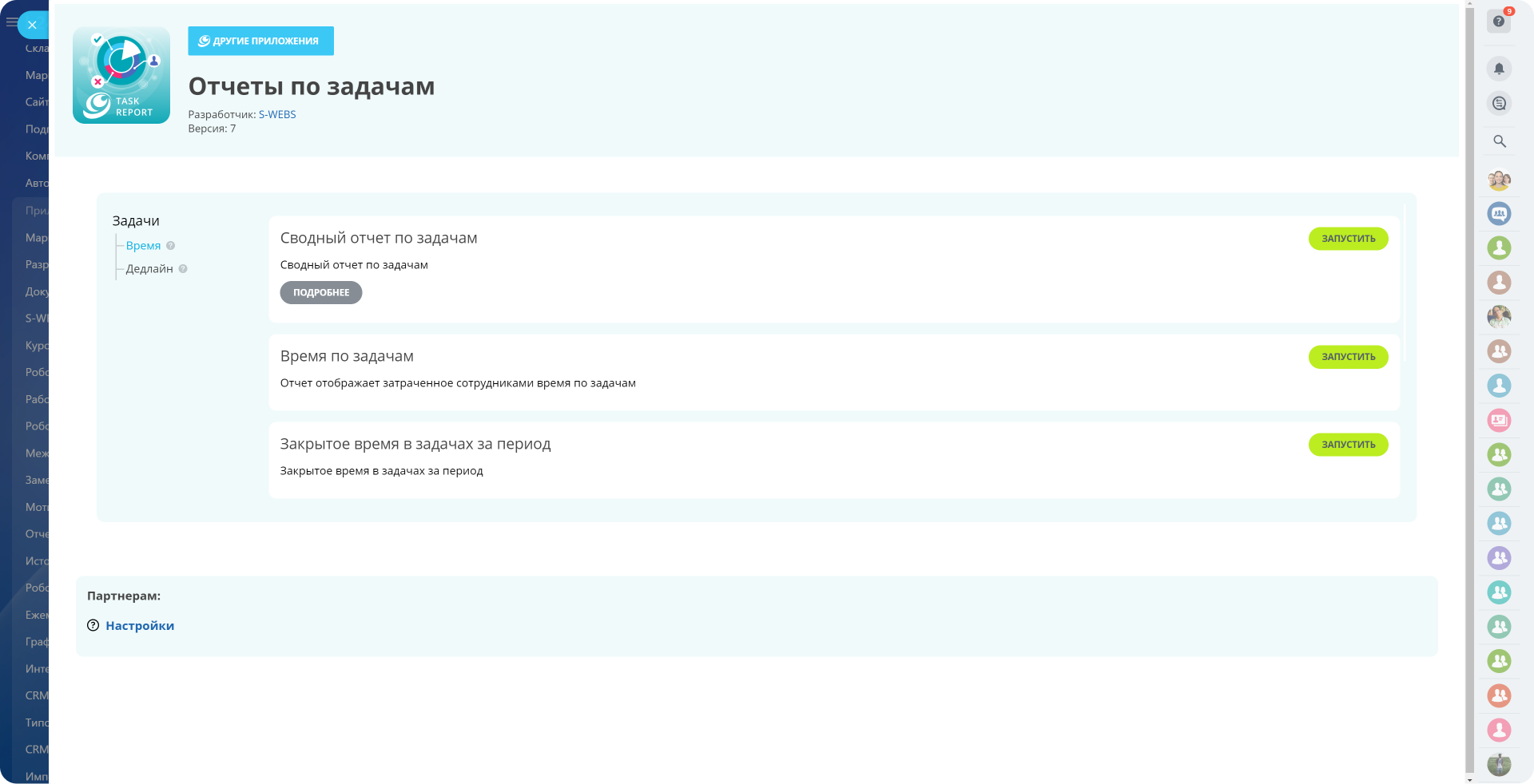 Если вам необходимы какие-то еще отчеты по работе с задачами, или у вас есть идеи по улучшению существующих - пишите нам на dev@s-webs.ru