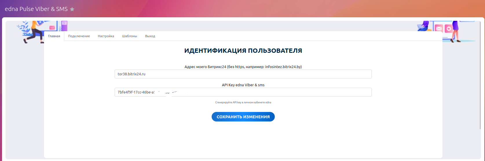 Приложение обеспечивает отправку (рассылку) сообщений по каналам смс и Viber через провайдера edna Pulse