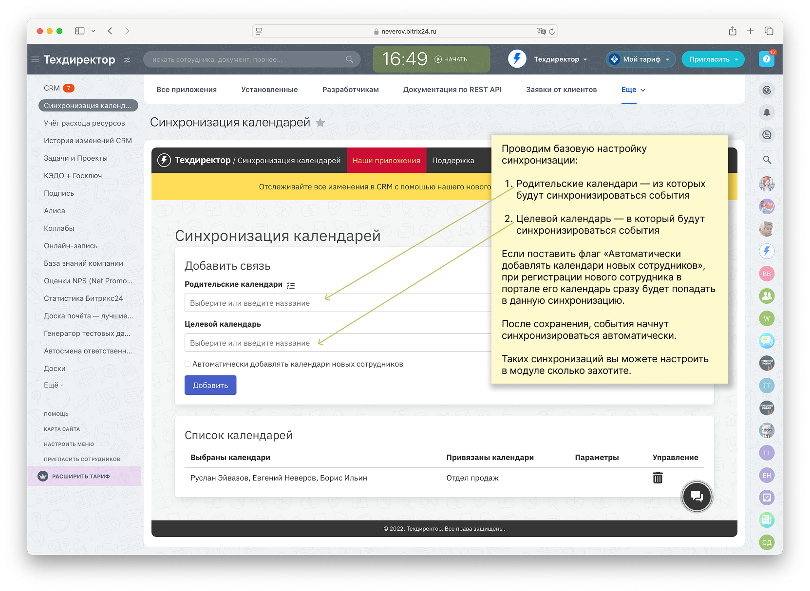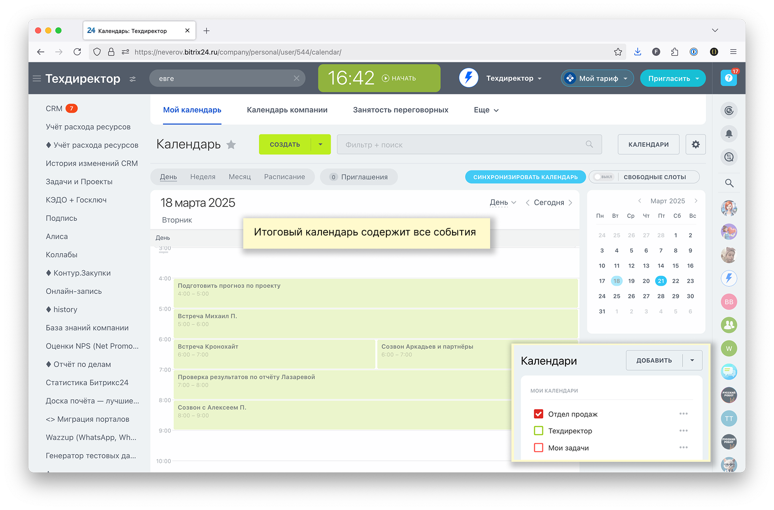 Модуль позволяет автоматически синхронизировать несколько календарей в одном