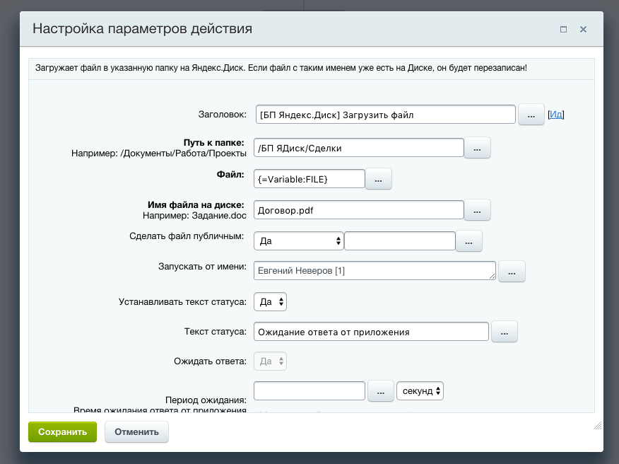 Загрузка файлов в Яндекс.Диск из бизнес-процессов