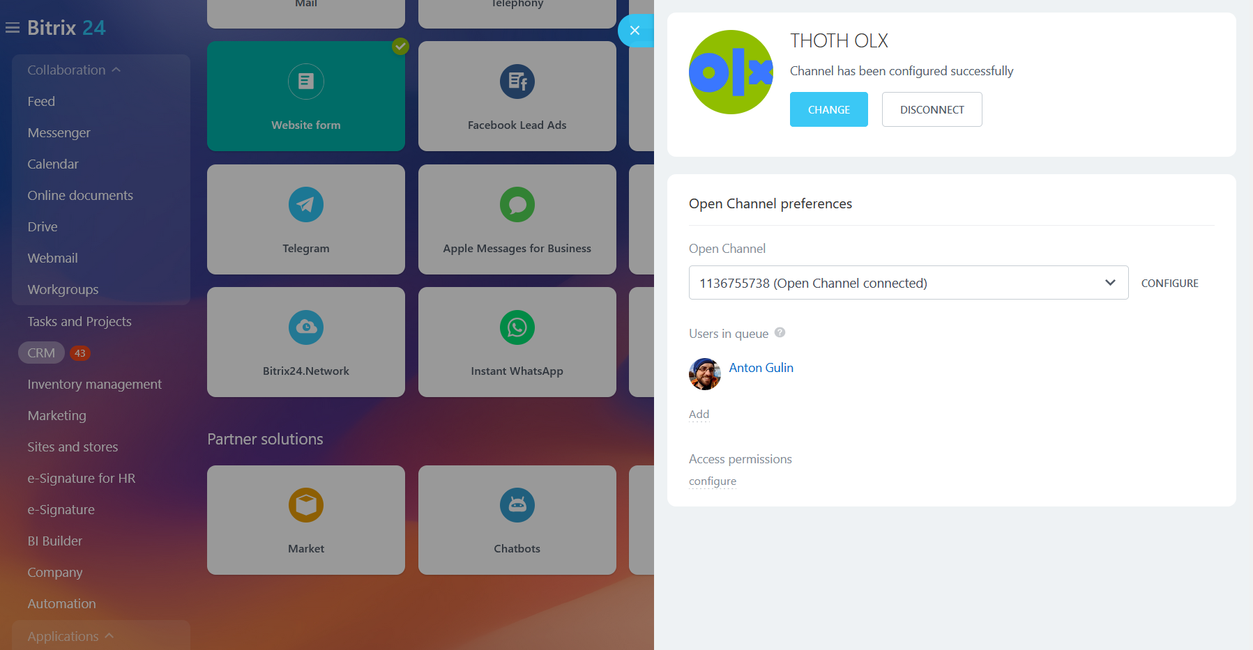 - Автоматическое создание и активация линий в Bitrix24 для каждого аккаунта OLX