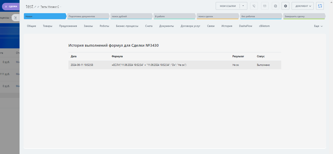 - Историю вычислений по конкретному Лиду, либо Сделке в карточке CRM.
