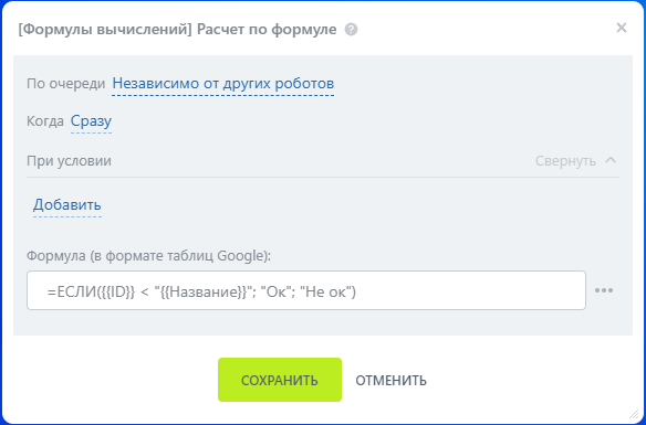 Приложение «Формулы вычислений» сделает быстрый расчет по заданным формулам и вернет результат(-ы). Поддерживаются все формулы таблиц Google.