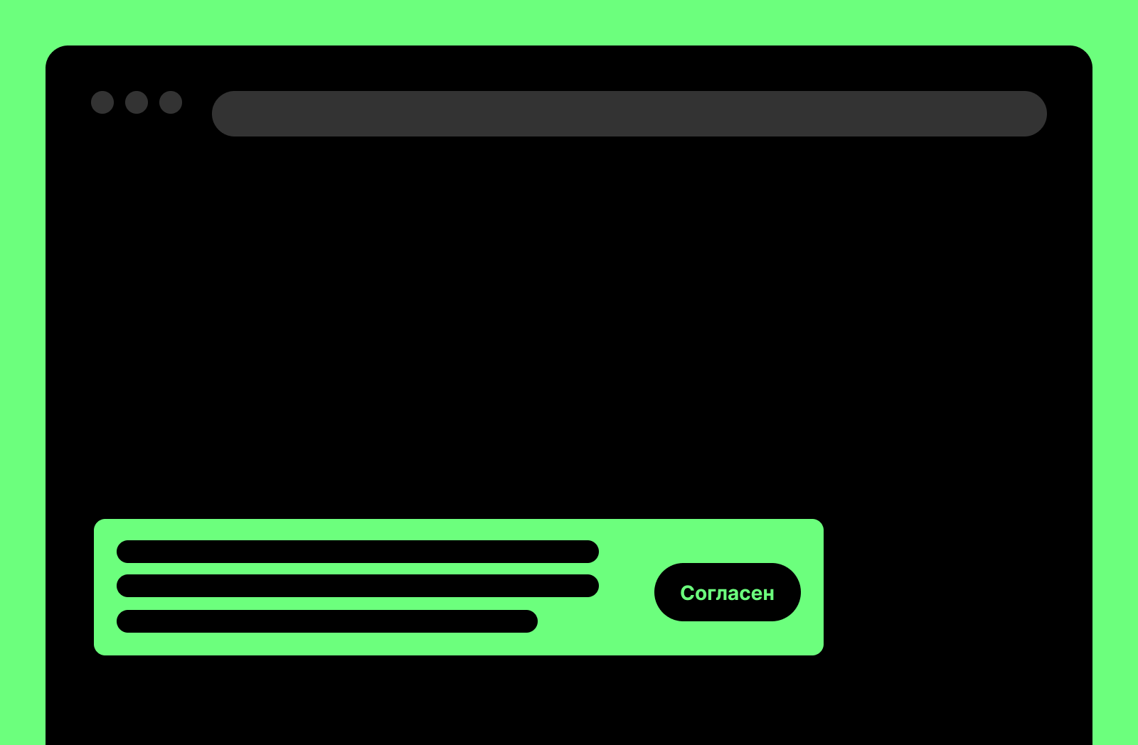 Да-да, то самое, которое всплывает в самый неожиданный момент. Но теперь — по делу. Закон суров, и мы — тоже. Пользователь увидит, согласится (или не согласится, но уже поздно — окно-то всплыло).