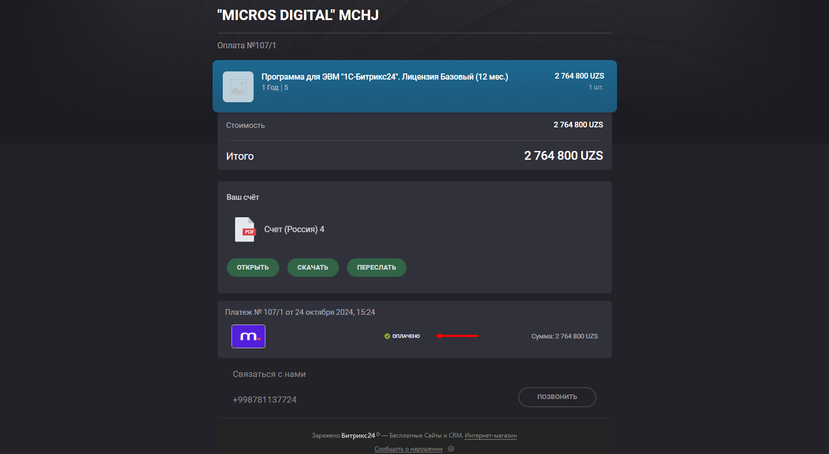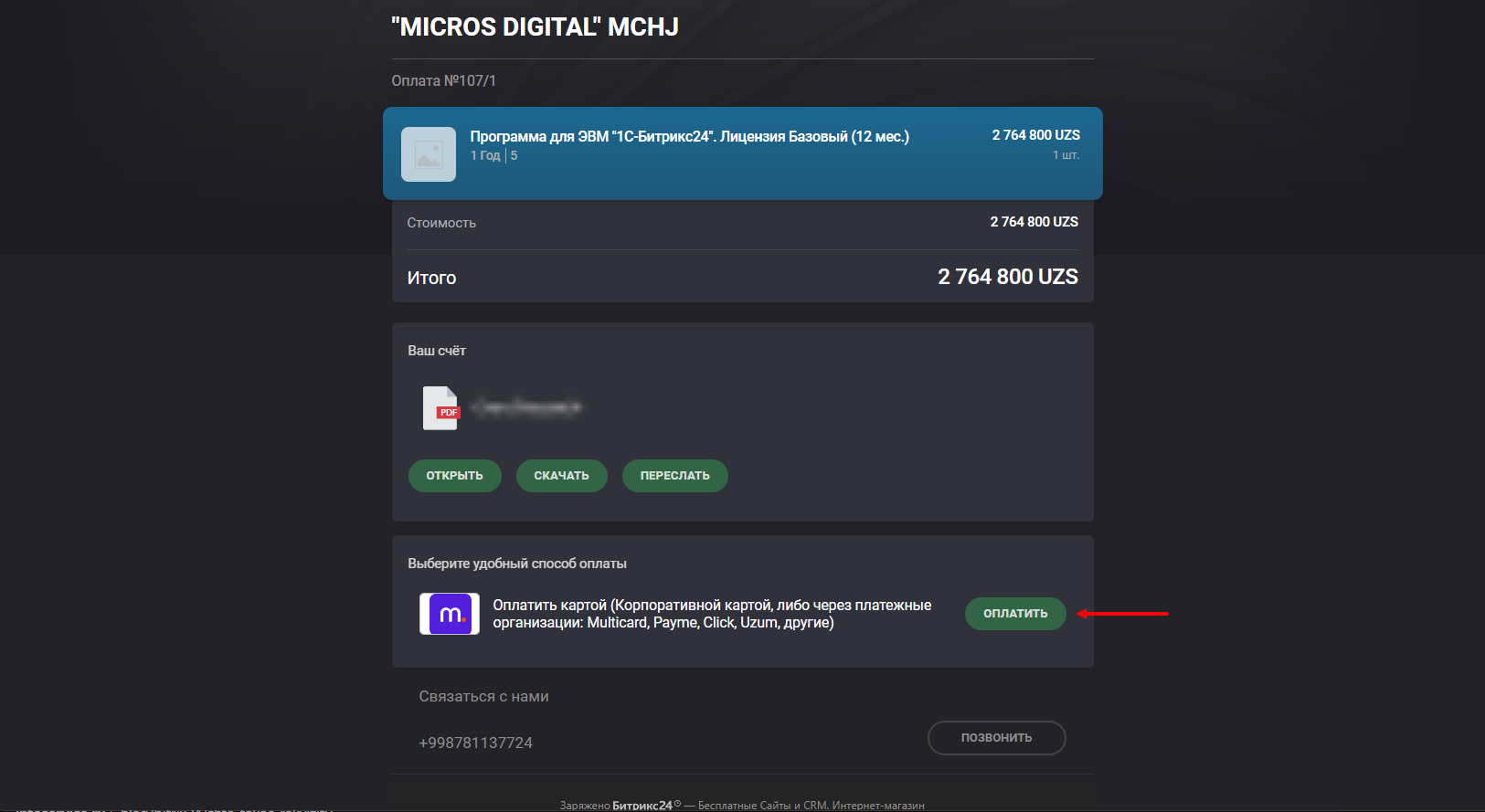 Данный модуль позволит Вам принимать и контролировать онлайн оплаты через платёжные системы Узбекистана, прямо в Битрикс24.