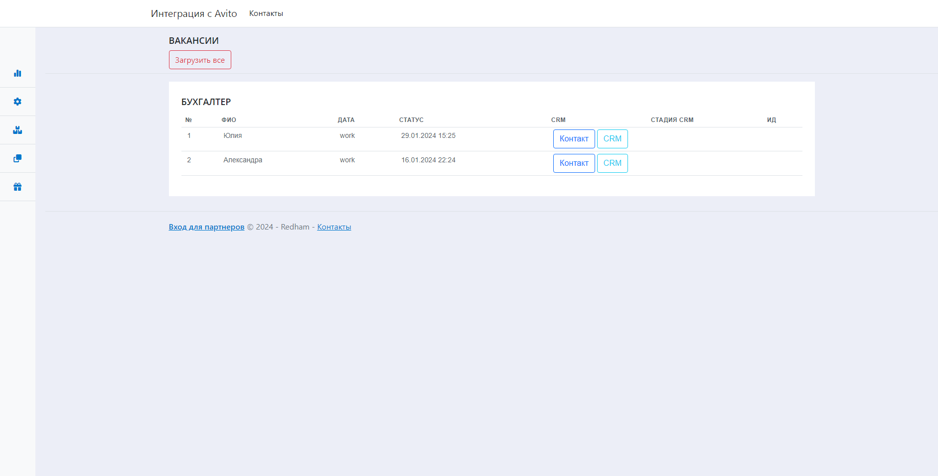 Данное приложение позволяет получать в автоматическом режиме отклики от кандидатов на ваши вакансии размещенных на авито.