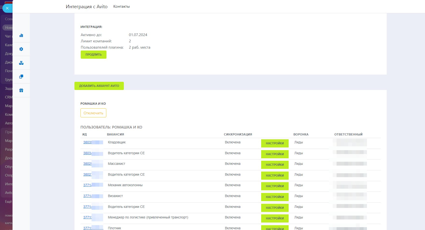Решение позволяет автоматически получать отклики с Avito и работать с ними не выходя из CRM