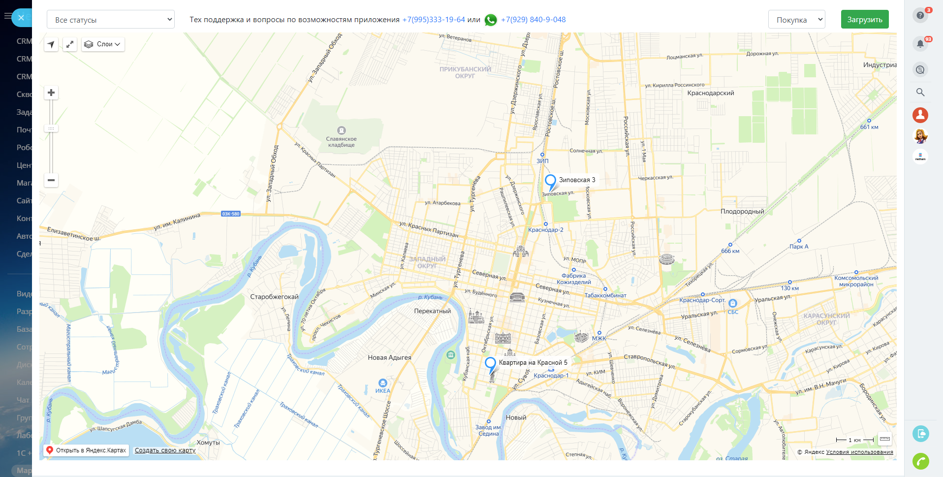 Данное приложение позволяет увидеть все ваши сделки прямо на карте. Используйте фильтрацию по районам и статусам.