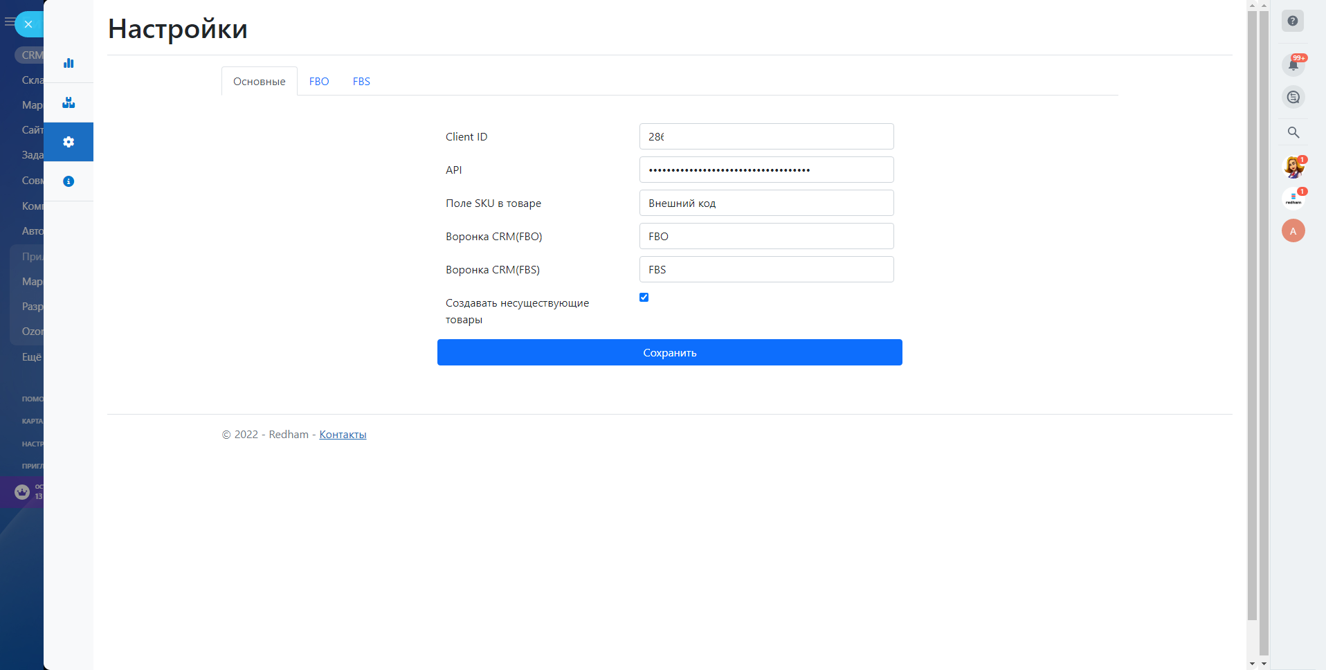 - В настройках указываете какой тип заказов синхронизировать, так же какие данные с Озон необходимо получать.