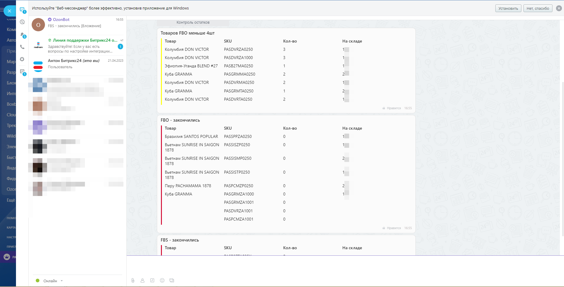 Рады получить положительные отзывы и узнать, что наше приложение улучшает вашу работу с Битрикс24 и OZON. Благодарим за доверие и поддержку!