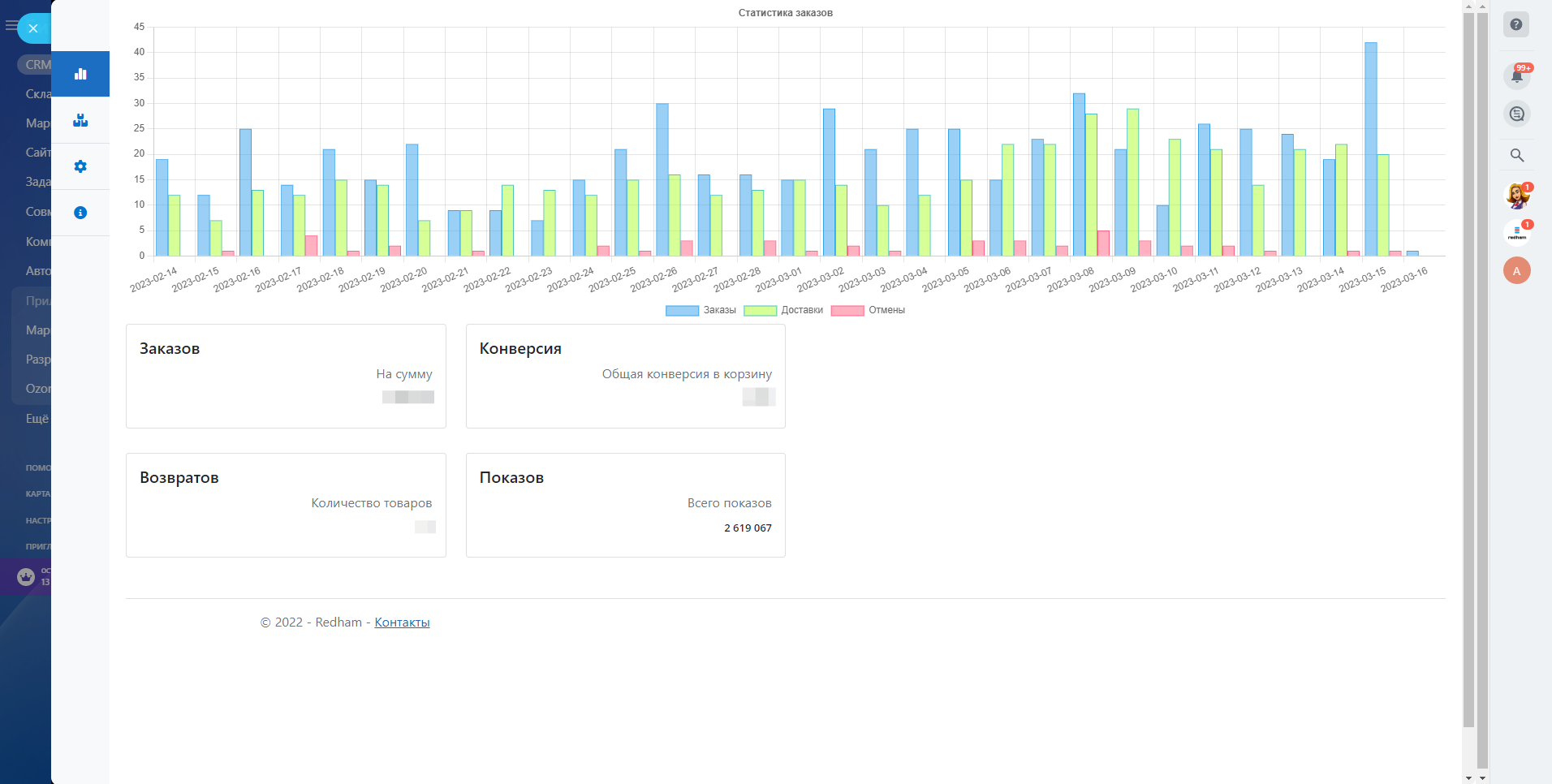 Интеграция с OZON. Работайте с заказами, остатками и статистикой из вашей CRM системы.